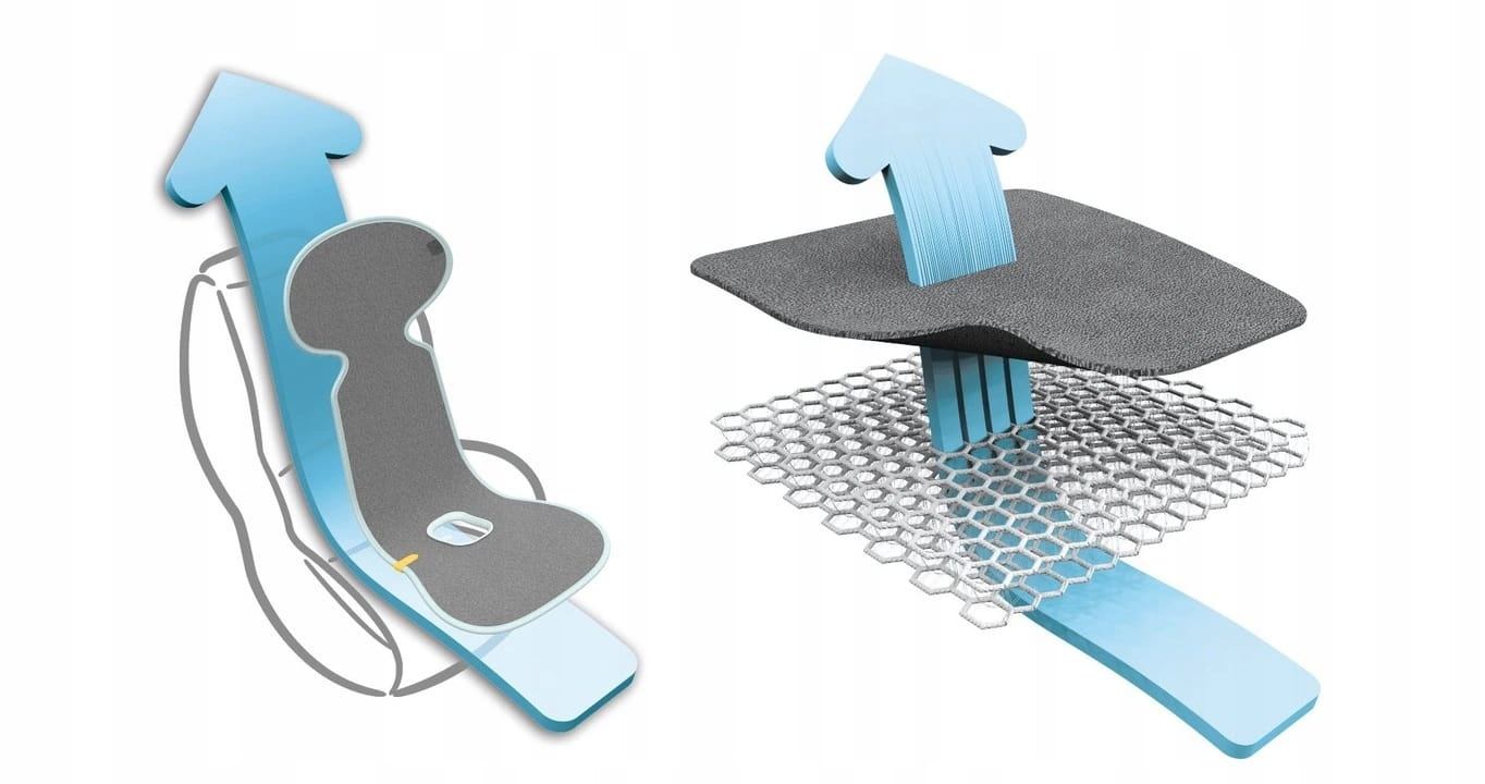 AeroMoov to innowacyjny ochraniacz na fotelik samochodowy zapobiegający nadmiernemu poceniu się dziecka.