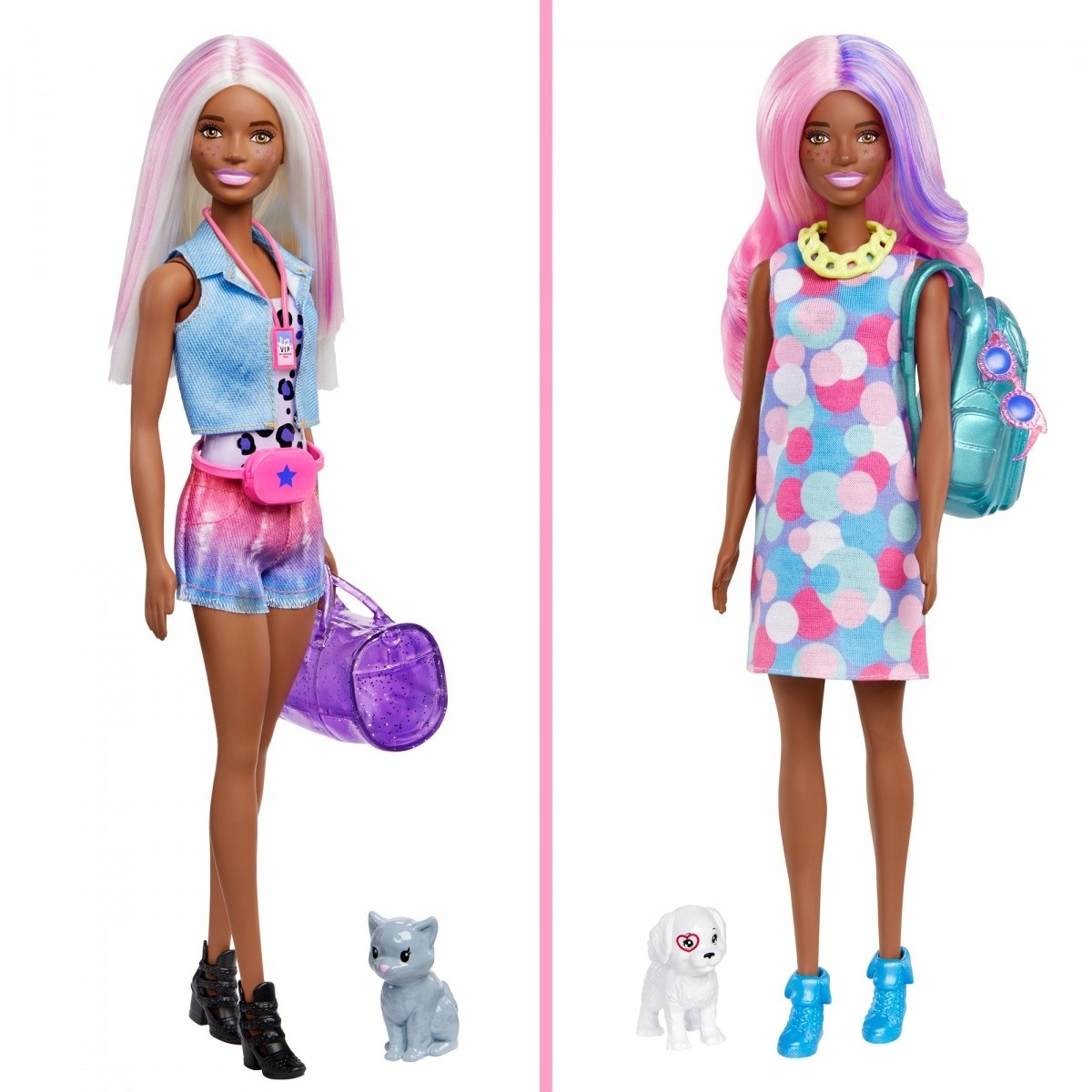 Dzieci mogą zebrać inne lalki z linii, aby dowolnie dopasowywać akcesoria i odkrywać nowe możliwości zabawy! W zestawie są lalka, dwa zwierzątka, dwa stroje, dwie torebki, dwie peruki ze zmianą koloru, dwa akcesoria ze zmianą koloru, gąbka i dodatkowe akcesoria tematyczne. Zestawy są sprzedawane oddzielnie w zależności od dostępności.