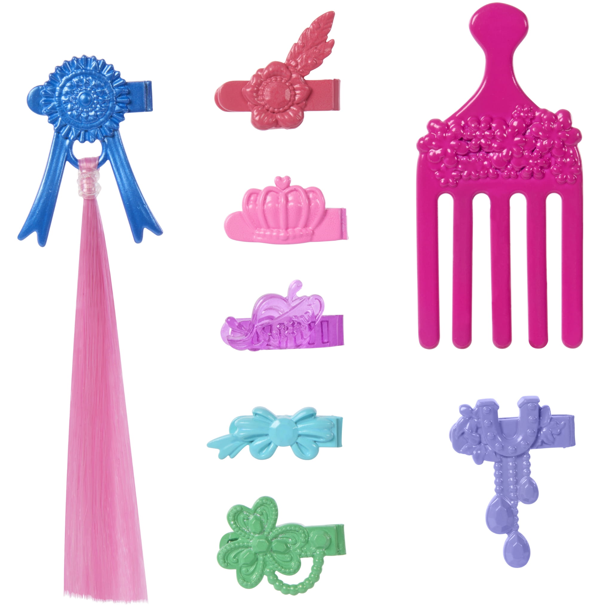 - 8 akcesoriów do stylizacji - w tym grzebień, doczepiany kosmyk i spineczki