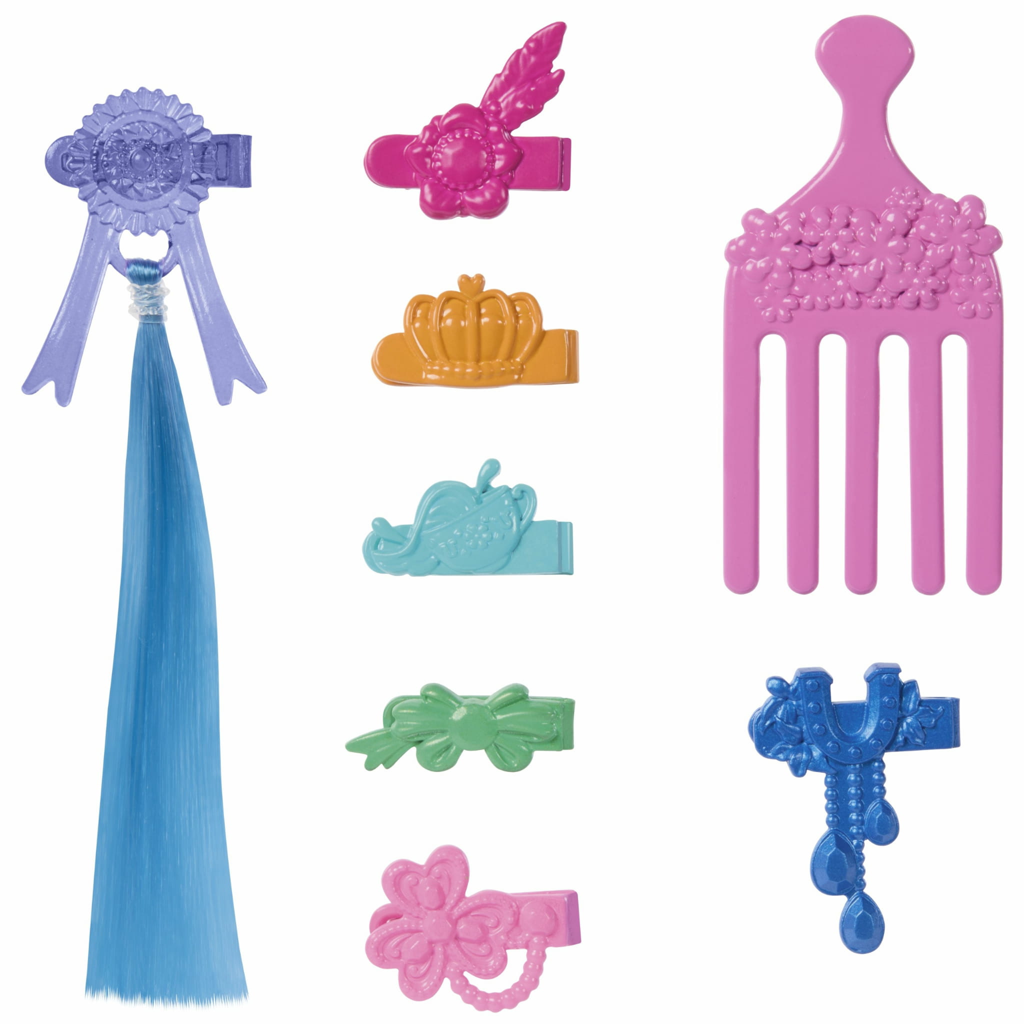 - 8 akcesoriów do stylizacji - w tym grzebień, doczepiany kosmyk i spineczki