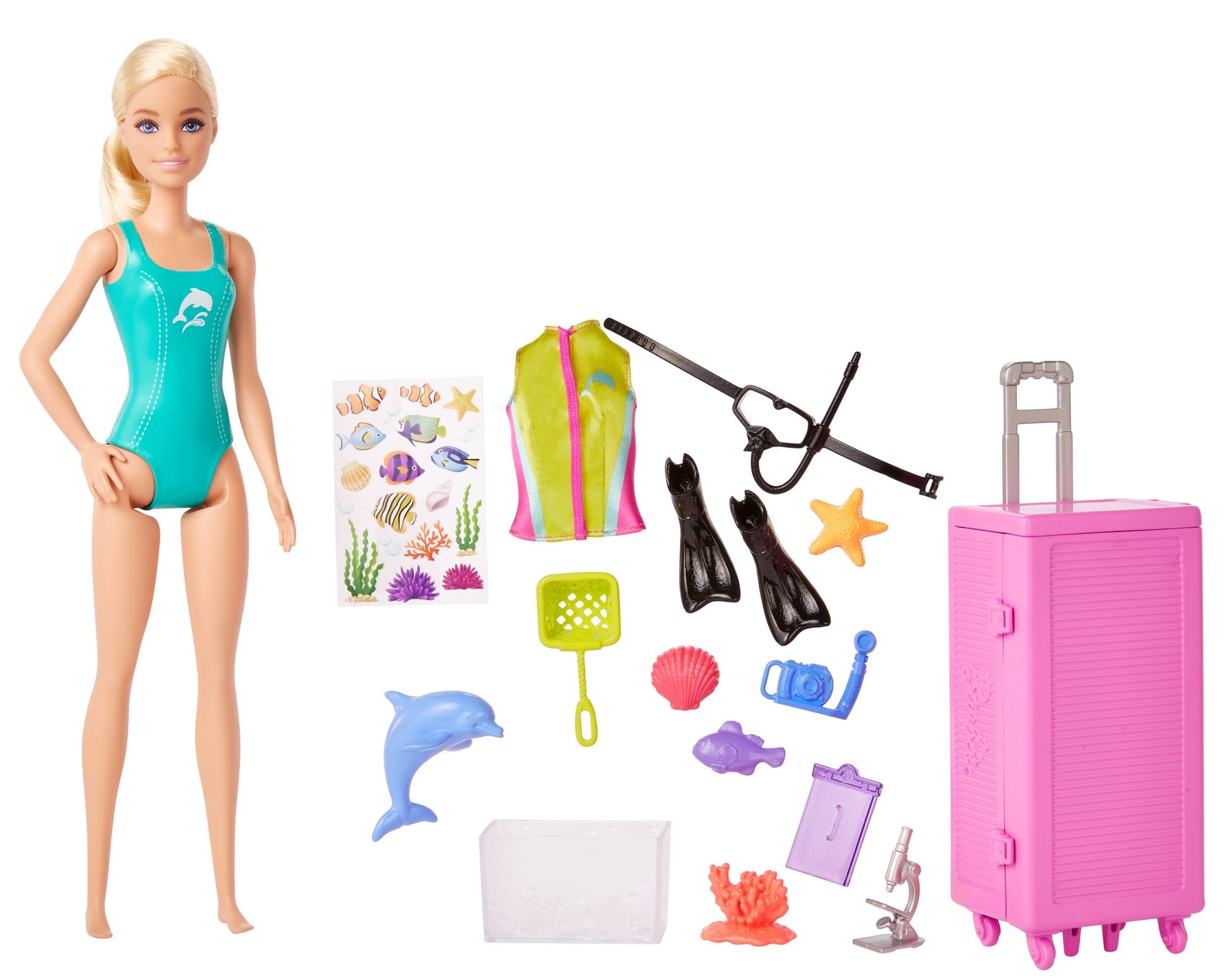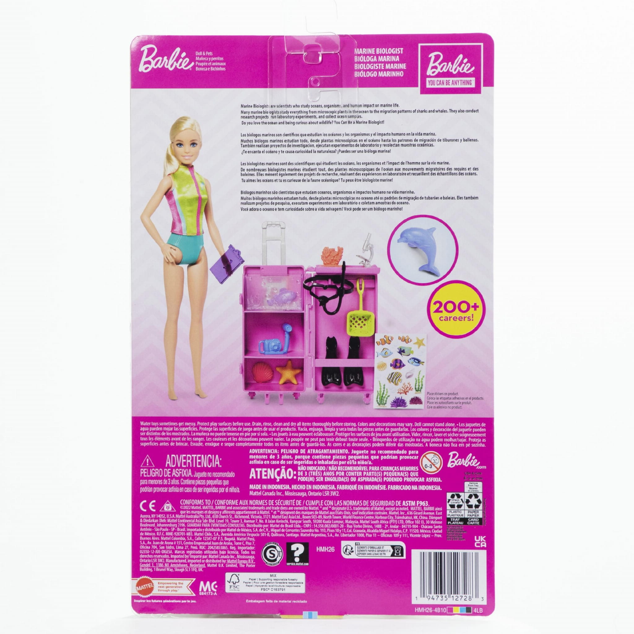 Lalka Barbie Biolożka Morska to idealny towarzysz dla małych odkrywców! Z nią dzieci mogą wyruszyć na fascynującą podróż po głębinach oceanu, korzystając z mobilnego laboratorium i ponad 10 elementów, które pobudzą ich wyobraźnię. W otwieranym laboratorium można przechowywać wszystkie akcesoria, a dołączony arkusz naklejek pozwoli na dodatkową personalizację. Lalka Barbie Biolożka Morska zapewni niezapomniane przygody w towarzystwie sprzętu do nurkowania, uroczych morskich stworzeń, takich jak delfinki, oraz zestawu laboratoryjnego.