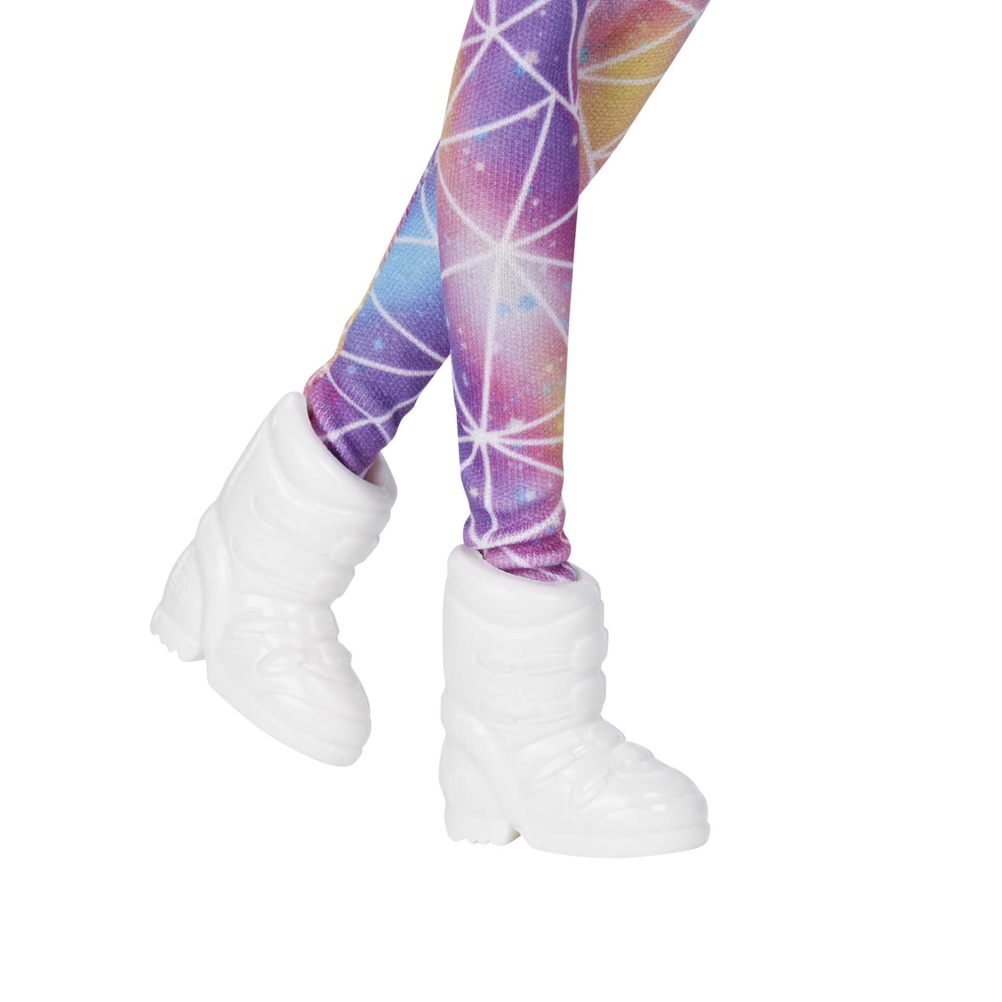 Ta lalka Barbie inspiruje dzieci do wszelkiego rodzaju zimowych zabaw dzięki akcesoriom nawiązującym do jazdy na nartach i łyżwach. Wsuń buty w podnóżki nart i chwyć kijki, aby poszarpać stoki! Lalka Barbie jest sportowa i stylowa w sportowym kostiumie z geometrycznym wzorem i nadrukiem typu tie-dye. Z kaskiem, szalikiem, butelką wody i okularami jest gotowa na dzień śnieżnej zabawy.
