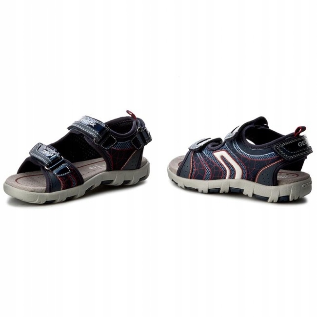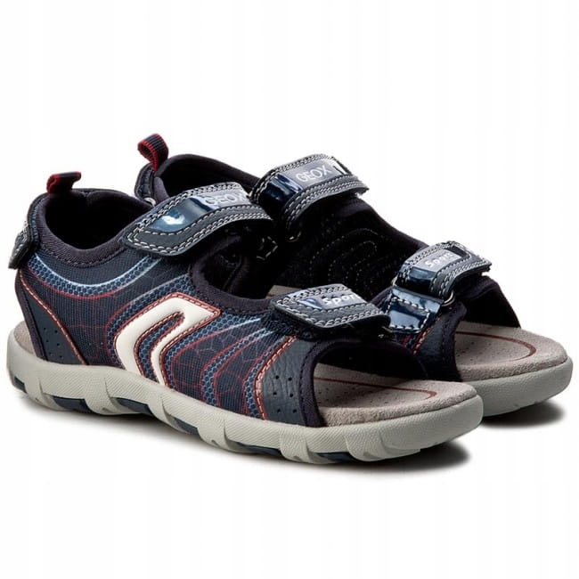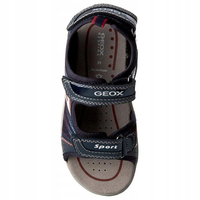 Oddychające sandały dziecięce GEOX. Cholewka wykonana z odpornych na wodę materiałów, wzmocniona przez siatkową podszewkę.Wyjątkową oddychalność dzięki perforowanej podeszwie. Amortyzująca i antybakteryjna wkładka z pianki EVA. Gumowa podeszwa zapewnia przyczepność i trwałość.Dzięki rzepom jest lepsza możliwość dopasowania sandałków do stópek naszych pociech. Model wyposażono w technologię Geox Respira.