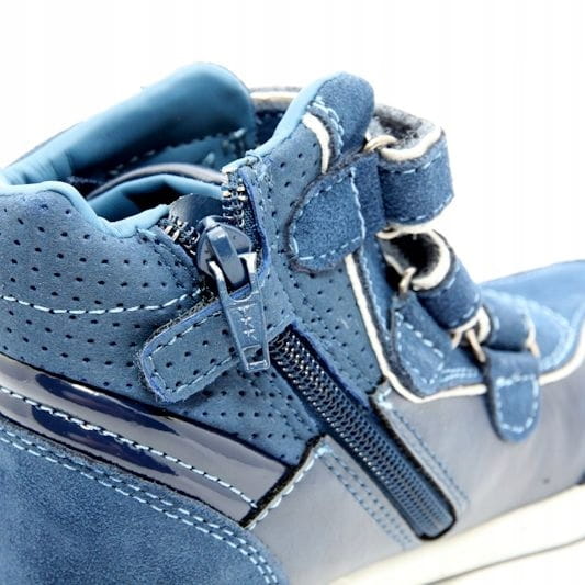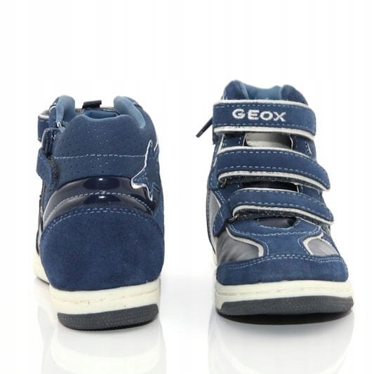 Półbuty dziecięce marki GEOX. Dziewczęcy model w granatowym kolorze ze srebrnymi akcentami i naszywką w kształcie gwiazdki. Cholewkę wykonano ze skóry zamszowej i ekoskóry. Wygodne rzepy dopasowują je do stopy. Dodatkowo suwak wewnątrz buta ułatwi szybkie zakładanie i zdejmowanie botów. Pięta usztywniona, nosek zabezpiecza palce przed urazami. Wnętrze wykonane z materiału. Skórzana wkładka skórzana jest wyjmowana, antybakteryjna, perforowana. Podeszwa od spodu na elastycznej gumie w granatowym kolorze. Dzięki systemowi kanalików Respira w niej zawartej, wilgoć z butów odprowadzana jest na zewnątrz. Delikatne i wygodne dziecięce buty Geox będą ozdobą każdej wiosenno- jesiennej stylizacji.