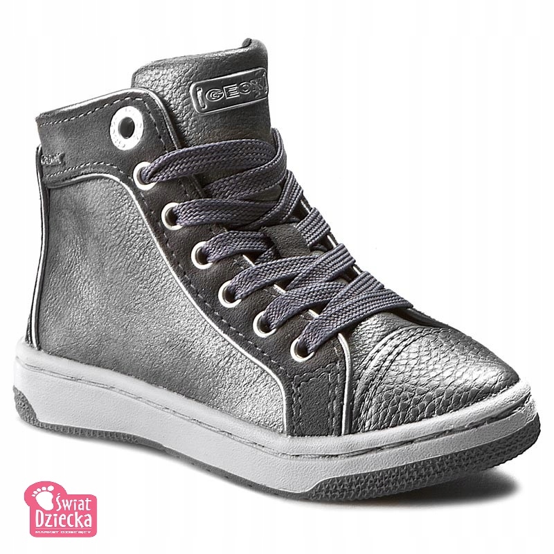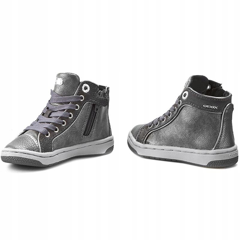 Dziecięce trampki marki GEOX. Szary, modny model z naturalnej skóry. Buty Junior Creamy to propozycja dla dziewczynek. Stonowana kolorystyka doskonale sprawdzi się podczas jesiennych dni. Boki efektownie błyszczą, na pewno każdy zwróci na nie uwagę. Nosek i pięta zabezpieczone są usztywnieniem. Sznurowanie oraz dodatkowe boczne zapięcie na suwak zapewniają dokładne dopasowanie butów do kształtu stóp dziecka. Środek obuwia obszyty jest materiałem, wkładka jest wykonana ze skóry, wyjmowana, oddycha i jest antybakteryjna. Podeszwa szara, antypoślizgowa, a technologia Respira dba o uczucie świeżości w środku, odprowadzając wilgoć i pot na zewnątrz obuwia.