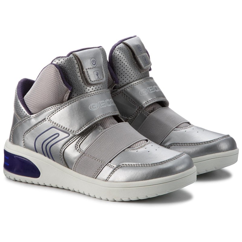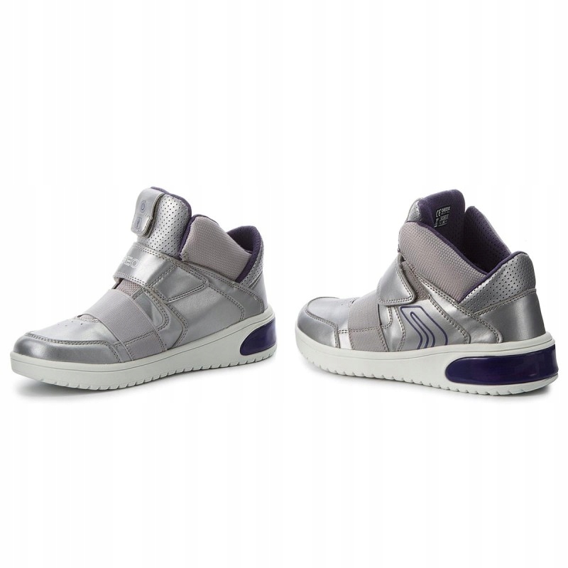 Geox XLED to buty nawiązujące wizualnie do obuwia koszykarskiego. Wbudowane w tylną część podeszwy ekrany LED mają różne funkcje: lewy but wyświetla zestaw efektów świetlnych, zaś prawy łączy się poprzez bluetooth z aplikacją pobraną na smartfony (systemem Android oraz iOS) umożliwiając nam personalizację obuwia poprzez wprowadzanie na wyświetlacz słów i rysunków! Cholewka wykonana z wysokiej jakości skóry eko, buty w ciekawej kolorystyce - srebrne z fioletowymi dodatkami, wyjmowana, oddychająca wkładka wykonana z wysokiej jakości skóry naturalnej zapewnia miękkość i zachowanie odpowiedniego klimatu wewnątrz buta, działa antybakteryjnie i anty-wstrząsowo, wyściółka tekstylna zapewnia dodatkową miękkość, jest delikatna, lekka, w wysokim stopniu przepuszcza powietrze, buty posiadają opatentowaną podeszwę wyposażoną w system oddychający GEOX RESPIRA - perforowana podeszwa przepuszcza parę wodną, nie przepuszczając wody do środka buta co zapewnia optymalny klimat w bucie, adidaski zapinane na rzepy - szybko i łatwo się zakłada oraz dopasowuje do stopy dziecka, sportowy fason znakomicie sprawdzi się podczas spacerów.
