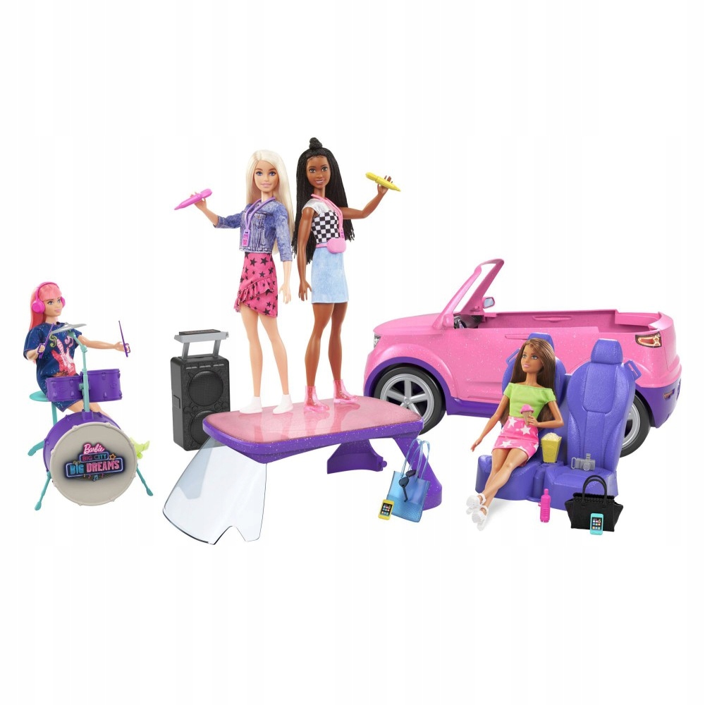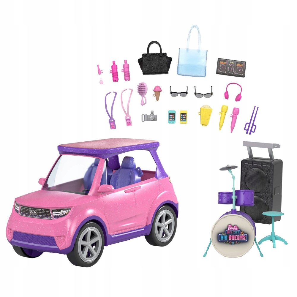 Brokatowy różowy pojazd ma zdejmowany dach, który staje się sceną, wyjmowane siedzenia (dla widzów) oraz ponad 20 akcesoriów tematycznych, takich jak głośniki, instrument, mikrofony i wiele innych. Przyszłe gwiazdy estrady w wieku od 3 lat mogą wymyślać różnorodne niezwykłe przygody, na które wyruszą tym pojazdem Barbie z transformacją. Lalki sprzedawane oddzielnie. Kolory i elementy dekoracyjne mogą się różnić.