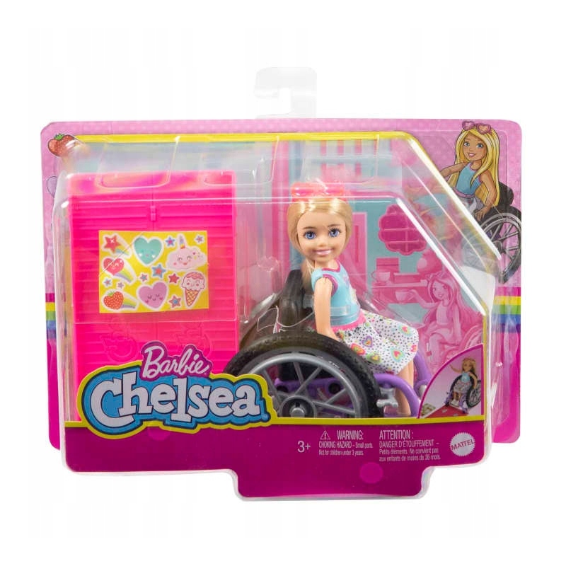 - Te urocze lalki Chelsea pozwalają na nowe możliwości zabawy dzięki wózkowi inwalidzkiemu z realistycznymi detalami i obracającymi się kółkami.