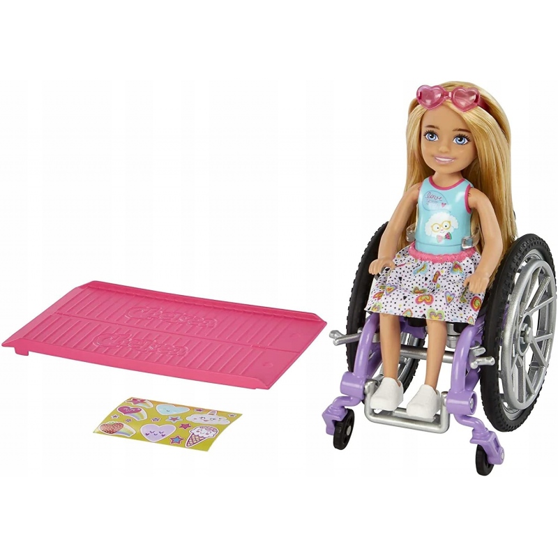 Ta lalka Chelsea ma w zestawie wózek inwalidzki z realistycznymi detalami i obracającymi się kółkami. W opakowaniu znajduje się też rampa, która zapewnia łatwy dostęp np. do domku dla lalek (sprzedawane odzielnie) oraz arkusz naklejek pozwalający spersonalizować sprzęt.