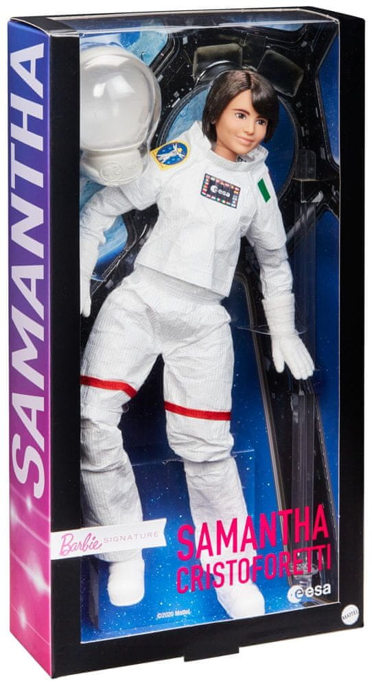 Kolekcja Barbie Role Models honoruje pilota, inżyniera i astronautę europejskiego urzędu kosmicznego Samanthy Cristoforetti. Lalka Barbie astronautki ESA, Samanthy Cristoforetti, jest gotowa do startu. Nosi kask, skafander kosmiczny i buty kosmiczne. Twój skafander kosmiczny jest ozdobiony realistycznymi detalami, takimi jak naszywki z logo ESA, znaczek EVA i włoska flaga. Ta kolekcjonerska lalka Barbie jest wzorowana na prawdziwej Samancie i może przybierać różne pozy, ponieważ jest ruchoma. Lalka Barbie Samantha Cristoforetti to świetny prezent dla kolekcjonerów i dzieci w wieku od 6 lat, szczególnie dla osób zainteresowanych badaniami kosmosu