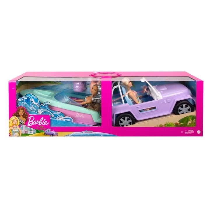 Barbie Przejażdżka 2 lalki + samochód + motorówka Zestaw
