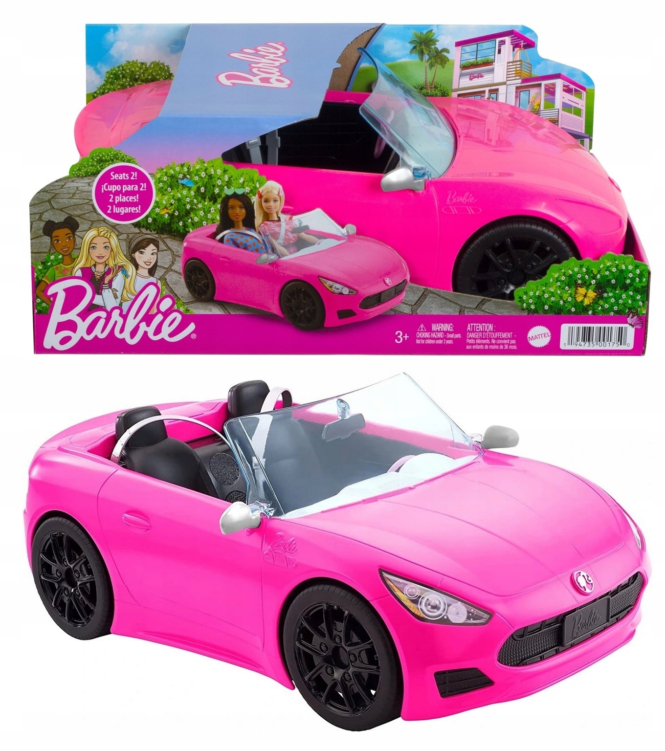 Ten stylowy pojazd z otwartym dachem i nowoczesnym wykończeniem inspiruje do wymyślania własnych opowieści. Sportowy kabriolet ma realistyczne detale w klasycznym stylu Barbie, takie jak spersonalizowana tablica rejestracyjna i symbol Barbie na masce. Posadź dwie lalki Barbie (sprzedawane oddzielnie) na siedzeniach i popchnij pojazd 0 dzięki obracającym się kołom możesz ruszyć ku przygodzie. Lalki sprzedawane oddzielnie. Kolory i elementy dekoracyjne mogą się różnić.