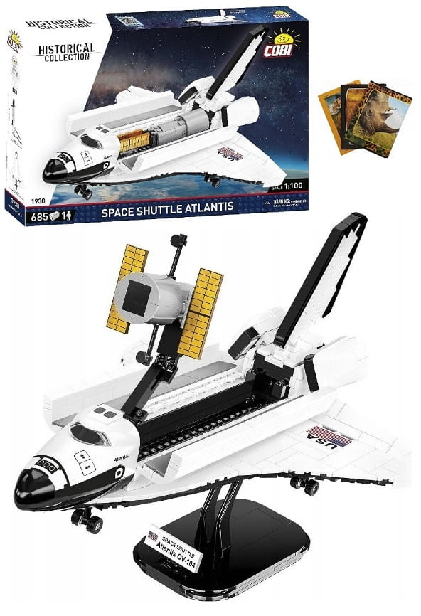 Wahadłowiec kosmiczny Atlantis jest jednym z najwspanialszych dzieł ludzkości i zapisał się na trwałe w historii podboju kosmosu. Klockowy model doskonale uzupełnia Kolekcję Historyczną COBI. Starannie zaprojektowany zestaw zawiera model promu przygotowany w skali 1:100. Bardzo dobre odwzorowanie, wysokiej jakości nadruki, ruchome elementy, dostęp do wnętrza, figurka kosmonauty oraz mini model teleskopu Hubble’a łączą ze sobą walory kolekcjonerskie i edukacyjne. Całość możesz wyeksponować za pomocą dołączonych do zestawu podstawek zawierających podpisy.