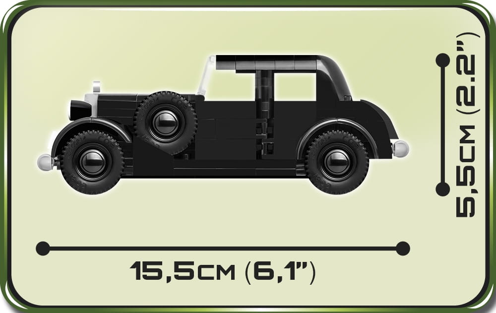 W ciągu pięciu lat produkcji powstało ponad 20 000 egzemplarzy tego modelu. Spośród siedmiu oferowanych wariantów nadwozia wielką popularnością cieszyła się czterodrzwiowa limuzyna sedan. Powstawały również dwudrzwiowe kabriolety i siedmiomiejscowe limuzyny. Z pewnością wielu fanów COBI podejmie się wyzwania zbudowania pozostałych wersji nadwozia! Samochód był wyposażony w silnik benzynowy o pojemności 2,2 litra, mocy 40kW i pozwalał rozwinąć prędkość ok. 116 km/h. Auto chętnie było wykorzystywane zarówno przez instytucje państwowe, jak i użytkowników cywilnych.