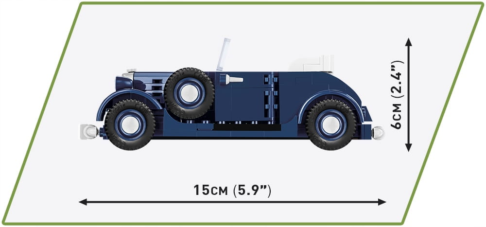Kabriolet Horch830BK wykonany w rewelacyjnej modelarskiej skali 1:35 to kolejny zestaw nawiązujący do historii motoryzacji! Zastosowanie specjalnie zaprojektowanych na potrzeby pojazdów elementów sprawia, że modele COBI prezentują się bardzo atrakcyjnie, zachowując wiele zaskakujących detali. Na szczególną uwagę zasługują precyzyjne nadruki w miejsce niegdyś stosowanych naklejek. Model Horch830BK jest znacznie krótszy od limuzyny, którą poruszał się m.in. Generał De Gaulle.