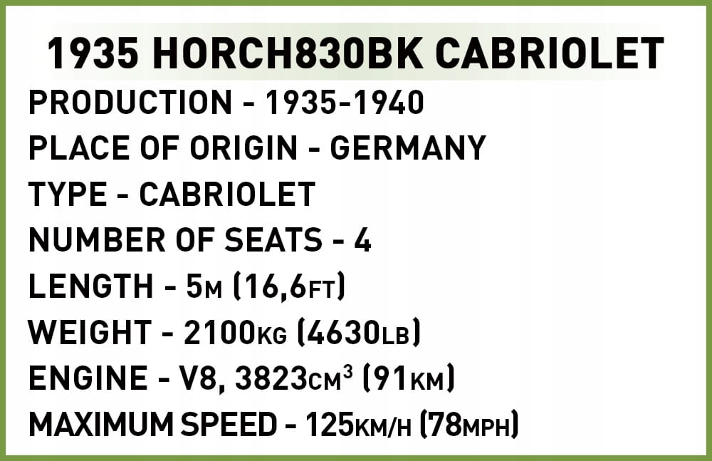 COBI 2262 NIEMIECKI KABRIOLET 935 HORCH 830 BK