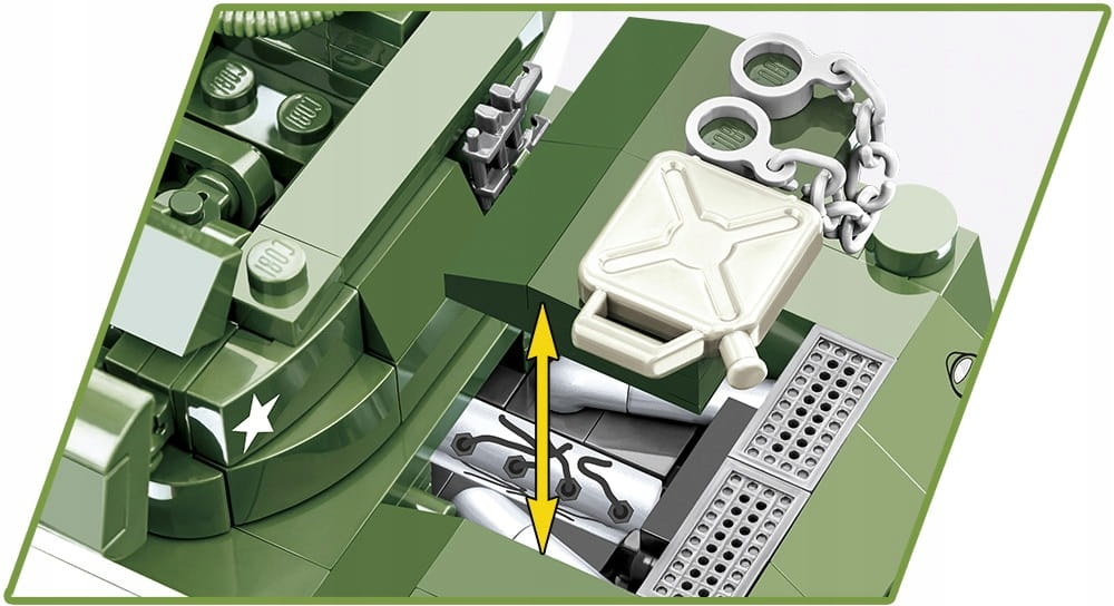 Funkcjonalności modelu to: dostęp do klockowej atrapy silnika, obracająca się wieża, ruchome działo i działająca trakcja gąsienicowa.