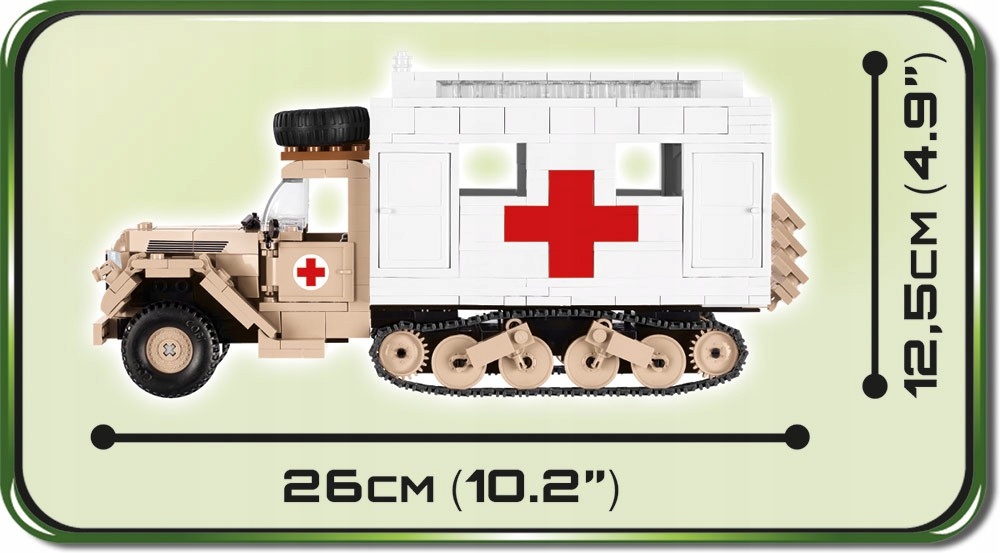 Model z klocków konstrukcyjnych COBI przedstawia wersję przeznaczoną dla służb sanitarnych. Posiada wiele ruchomych elementów takich jak otwierane drzwi, obracające się koła z gumowymi oponami czy ruchome gąsienice. Do zestawu dołączone są dwie rzadkie figurki żołnierzy niemieckich z akcesoriami: sanitariusza w mundurze tropikalnym i rannego. W pudełku można znaleźć również specjalną kartę ze statystykami pojazdu, która jest przeznaczona do Historycznej Gry Bitewnej, do której podręcznik z zasadami można pobrać bezpłatnie ze strony www.cobigames.com