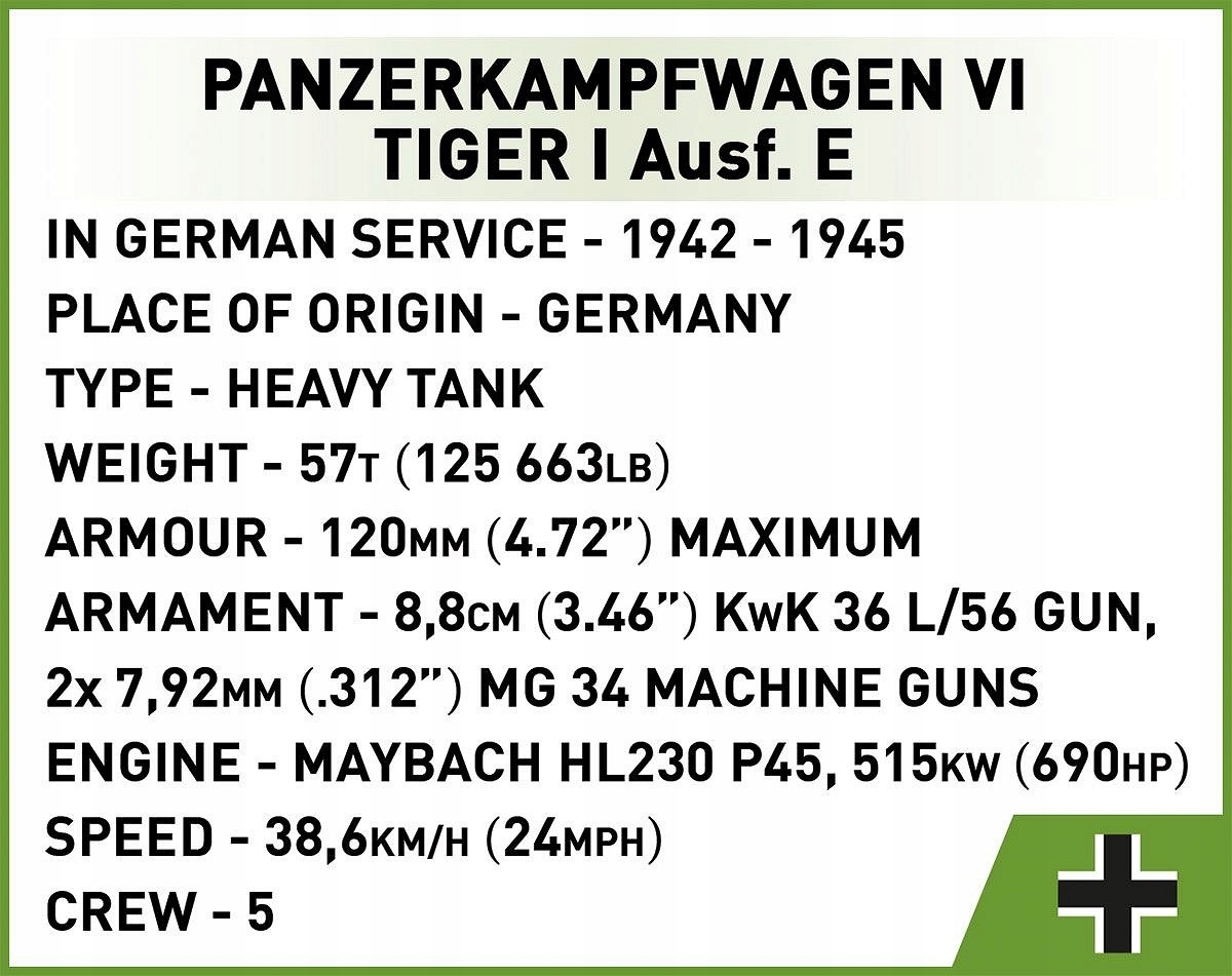 COBI 2587 Czołg Panzerkampfwagen VI Tiger I Ausf. E Executive Edition