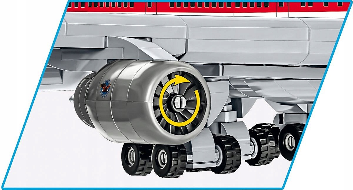 Z ponad tysiąca elementów powstaje szczegółowy model w skali 1:144, którego malowanie nawiązuje do historycznego pierwszego lotu słynnego odrzutowca. Specjalne zaprojektowane elementy oraz wysokiej jakości nadruki sprawiają, że model zachwyci nie tylko klockowych modelarzy, ale również pasjonatów lotnictwa cywilnego w każdym wieku! Po zbudowaniu samolot ma aż 46 cm długości i rozpiętość skrzydeł wynoszącą 42 cm! W silnikach znajdują się ruchome turbiny, którymi można poruszać.