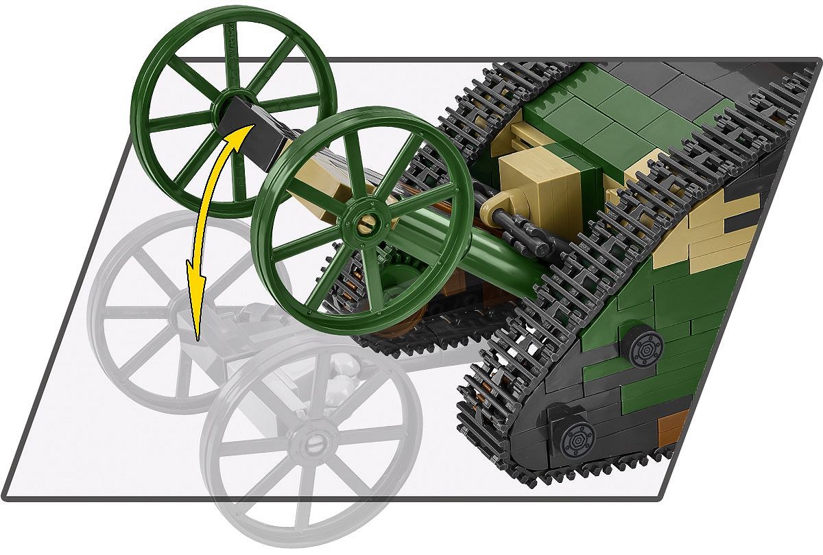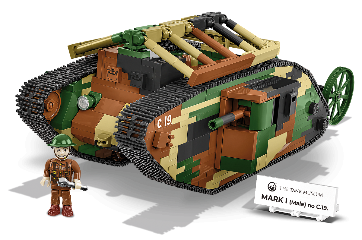 To właśnie wtedy narodził się projekt jednego z pierwszych czołgów! MARK I (Male) numer C.19. zbudujesz z 878 klocków konstrukcyjnych COBI. Model mierzy 28 cm długości. Dzięki zastosowaniu modelarskiej skali 1:35 model pasuje do figurek COBI oraz innych pojazdów wydanych w tym rozmiarze. Czołg jest wyposażony w działającą trakcję gąsienicową, obrotowe działka i otwierane klapy. Oznaczenia oraz emblematy wykonane są z kolorowych klocków i trwałych nadruków, które nie ścierają się nawet w trakcie intensywnego użytkowania.