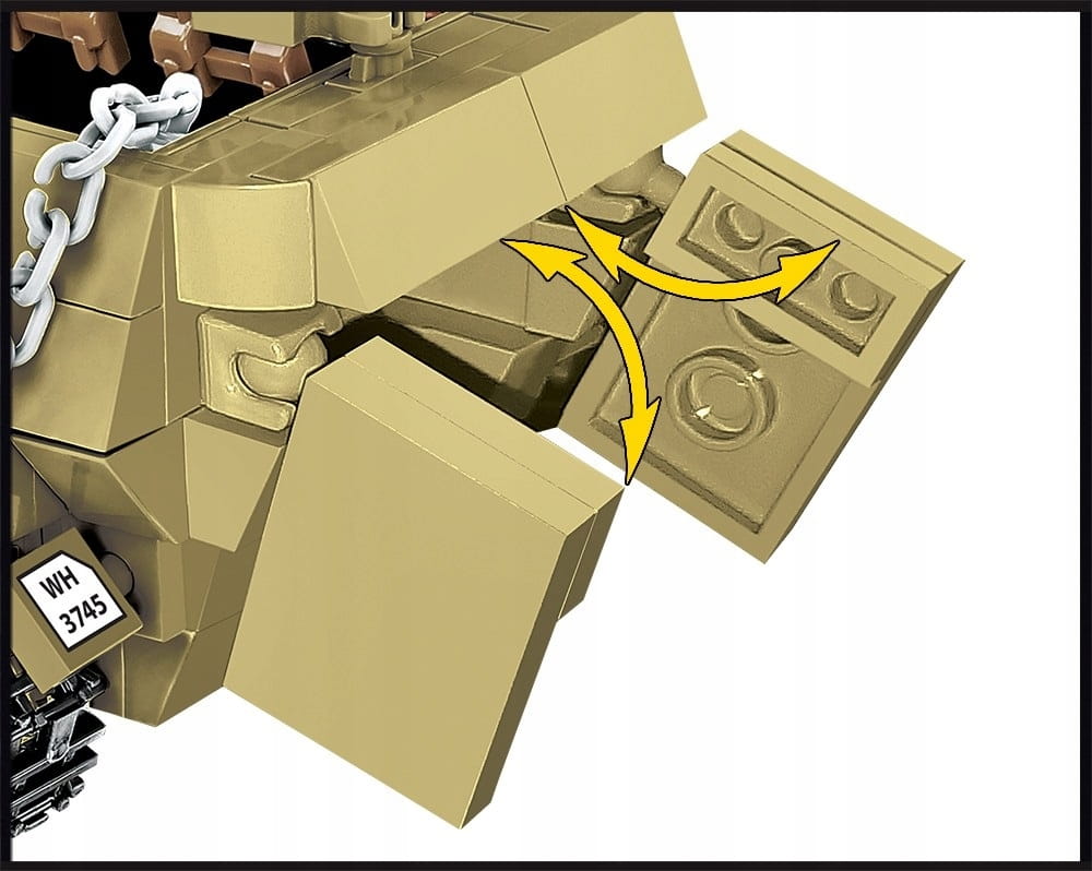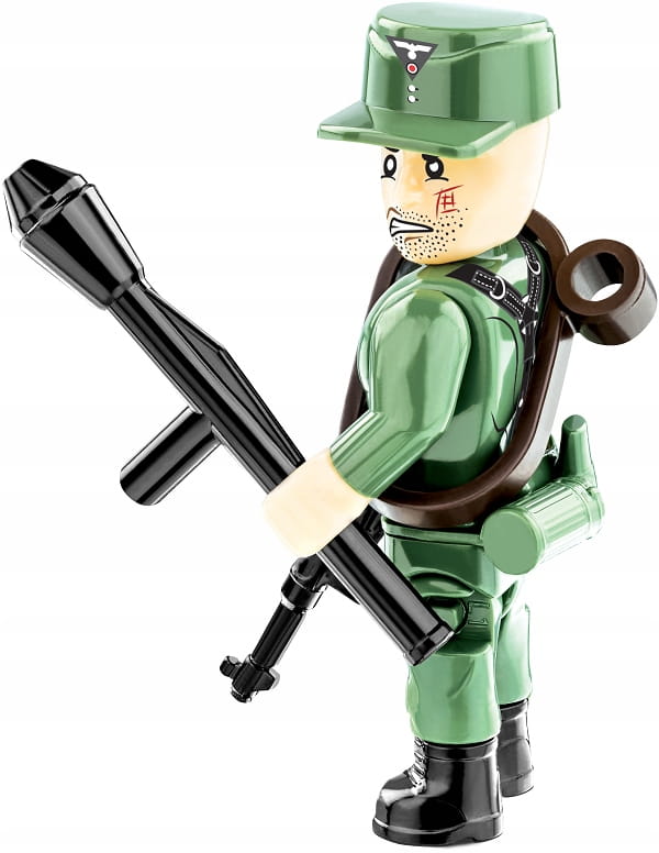 W zestawie klocki mają zupełnie nowy kolor, wprowadzony na potrzeby jeszcze lepszego odwzorowywania modeli historycznych! Tutaj nie ma naklejek, stosujemy wyłącznie wysokiej jakości trwałe nadruki. Pojazd został wyposażony w ruchome koła z prawdziwymi oponami. Trakcja gąsienicowa składająca się z realistycznych klockowych ogniw pracuje i zachowuje się jak prawdziwa w trakcie poruszania pojazdem. Otwierane tylne drzwi, dwa karabiny maszynowe oraz akcesoria dodatkowe uatrakcyjniają zabawę transporterem. Całość zestawu uzupełnia figurka przedstawiająca grenadiera pancernego z dwustronnymi nadrukami. Żołnierz jest wyposażony w czapkę, klocek imitujący puszkę na maskę przeciwgazową i manierkę, pas nośny na broń, pistolet maszynowy MP 40 oraz granatnik przeciwpancerny Panzerfaust. Zestaw został opracowany z dbałością o detale i jest również doskonałym rozwinięciem popularnej kolekcji Historical Collection!