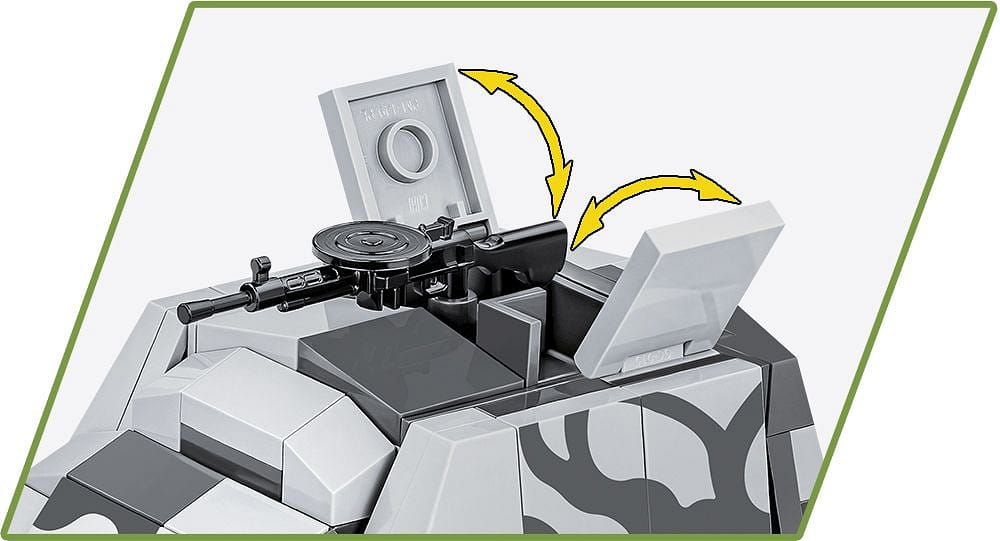 Przygotowaliśmy wyjątkowy klockowy zestaw z legendarnym samochodem powstańczym “Kubuś”! Klockowy model w skali 1:35 zawiera nadruki oraz wszystkie najważniejsze cechy swojego pierwowzoru znajdującego się w Muzeum Wojska Polskiego w Warszawie. Nie zapomnieliśmy nawet o tak mało znanym detalu, jak emblemat Kolumny Motorowej Wydra, który znajdował się na zderzaku! Nasz model został wyposażony w karabin maszynowy DP-28. Górny właz można otworzyć, aby umieścić w nim figurkę. Nie każdy wie, że do Kubusia wsiadało się przez otwór w podłodze! Zaznaczyliśmy w modelu to nietypowe wejście! Do zestawu dołączone są dwie figurki przedstawiające powstańców warszawskich. W szarym kombinezonie, z biało-czerwoną opaską na prawym ramieniu, z naszywką “Wydry” na lewym i niebieskiej furażerce przedstawiliśmy żołnierza z Kolumny Motorowej Wydra, która była częścią Zgrupowania Krybar. Drugi z żołnierzy należy do plutonu “Rafałki”.