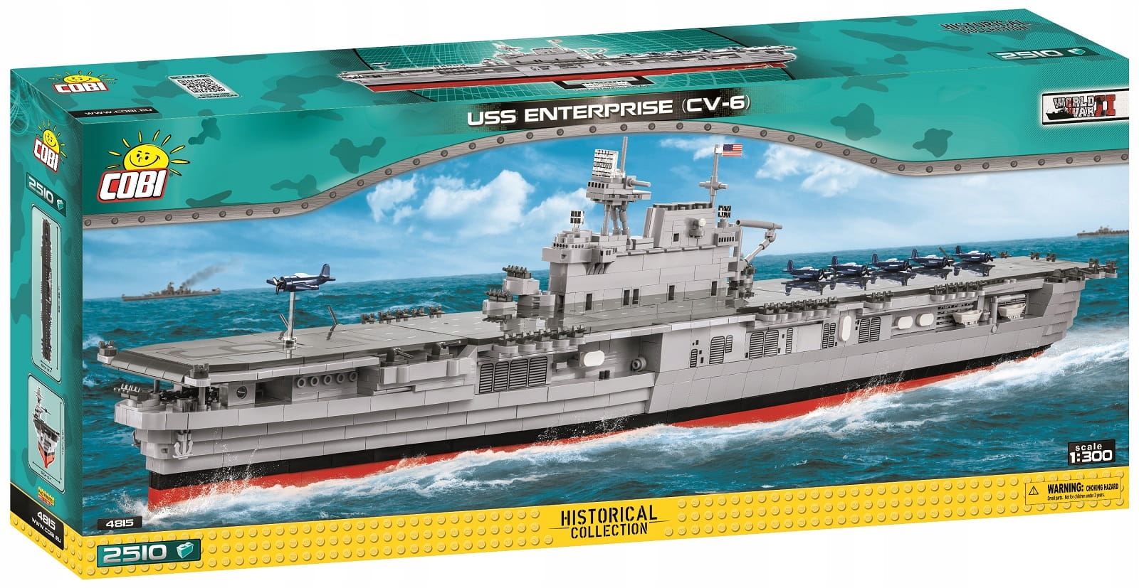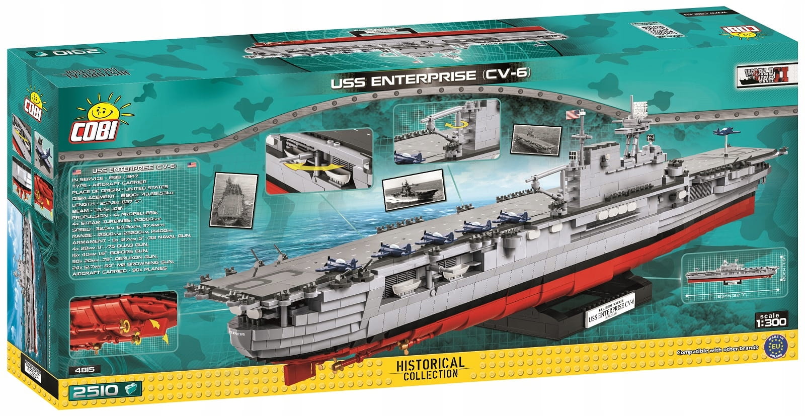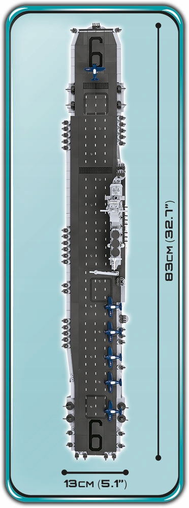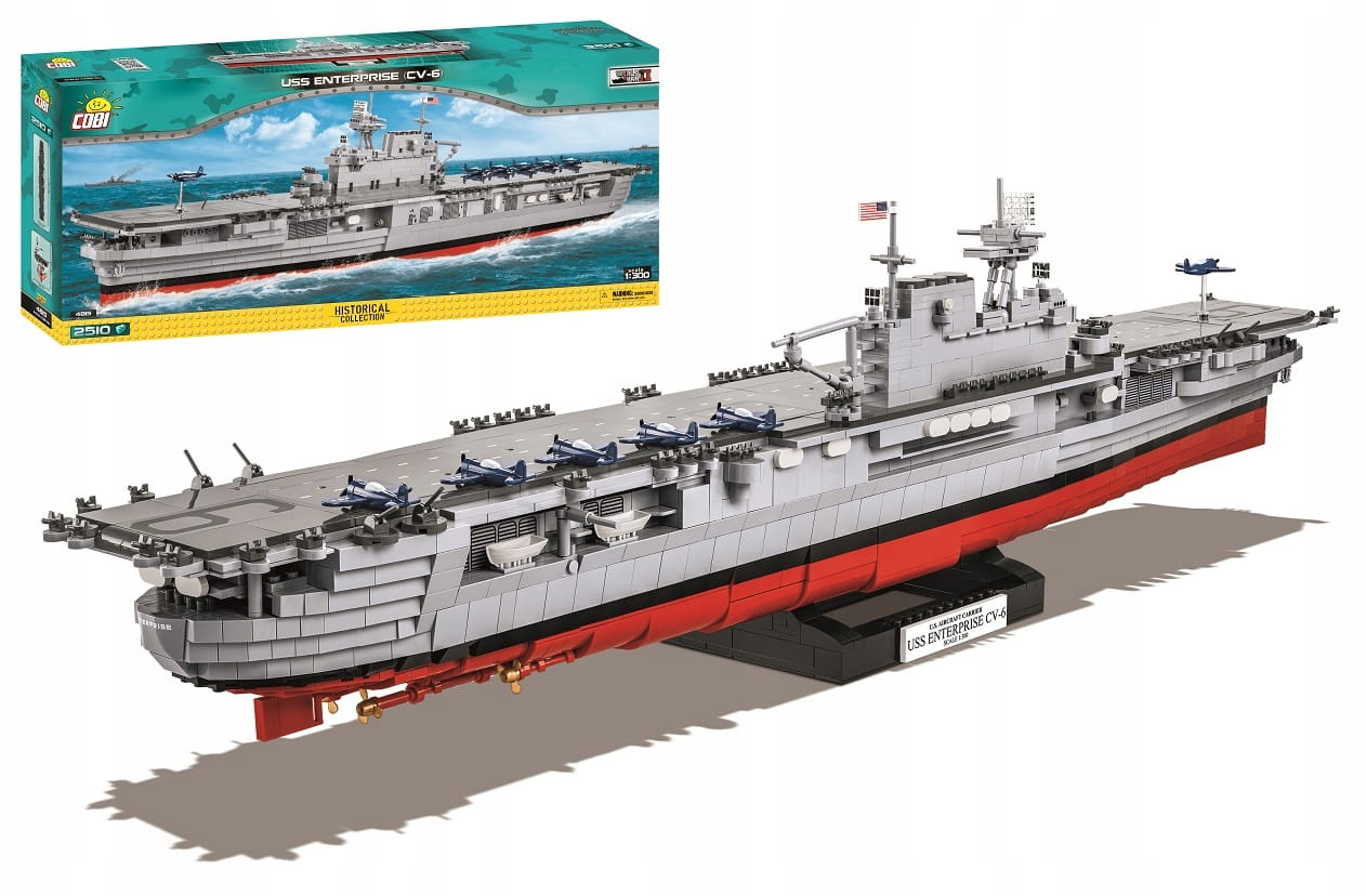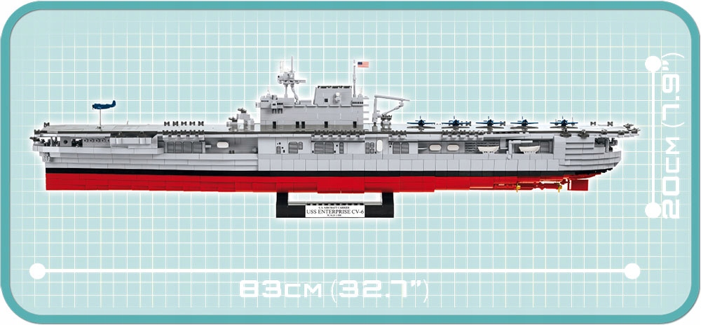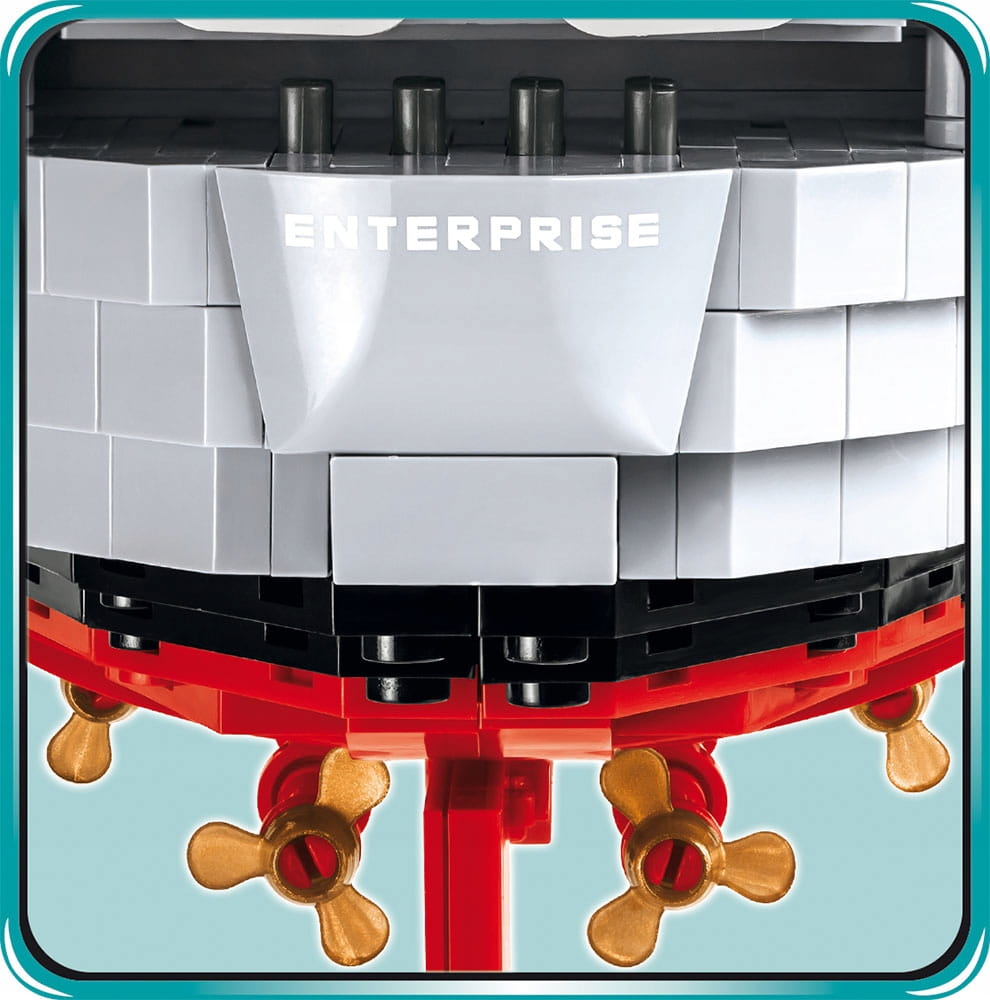 Zestaw składający się aż z 2510 klocków zapewni wiele godzin emocjonującej budowy i zabawy. Zastosowane wysokiej jakości nadruki z precyzją odtwarzają malowanie i detale okrętu z okresu II wojny światowej. Nadruki nie ścierają się nawet przy intensywnej zabawie. Do modelu dołączono aż 6 klockowych mikro samolotów pokładowych i specjalny przezroczysty klocek, który po wpięciu go w podkład może imitować startujący samolot. Lotniskowiec USS Enterprise (CV-6) można wyeksponować na dołączonej do zestawu podstawce ekspozycyjnej. Do zestawu dołączona jest również biała tabliczka znamionowa zawierająca podstawowe informacje na temat modelu lotniskowca.