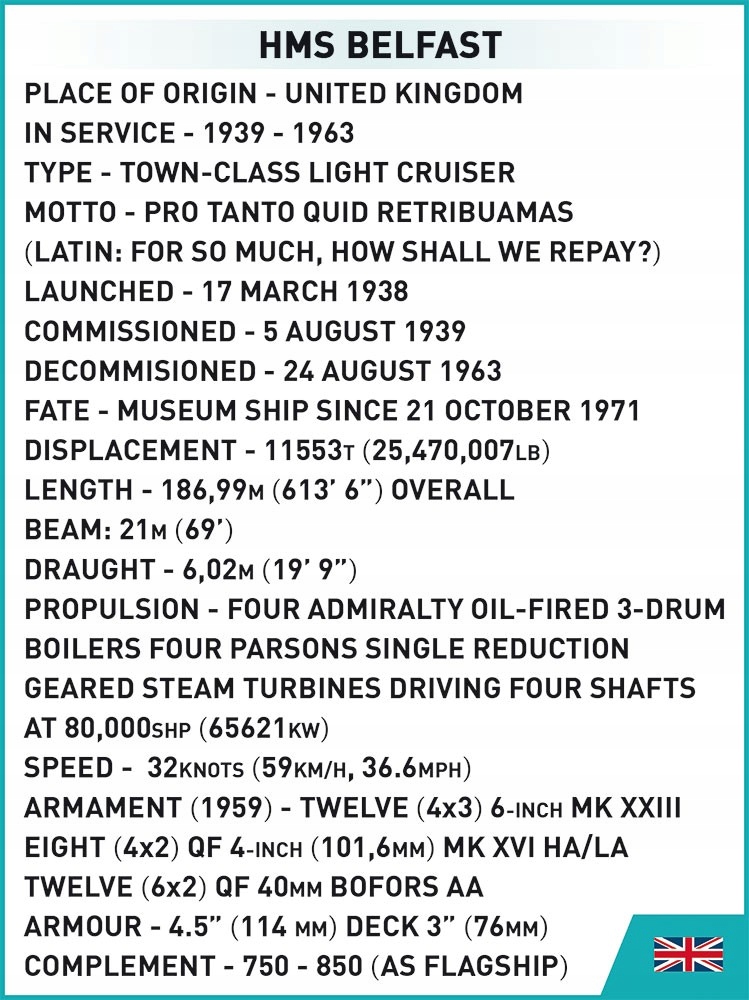 COBI 4844 STATEK KLOCKI OKRĘT HMS BELFAST IMW
