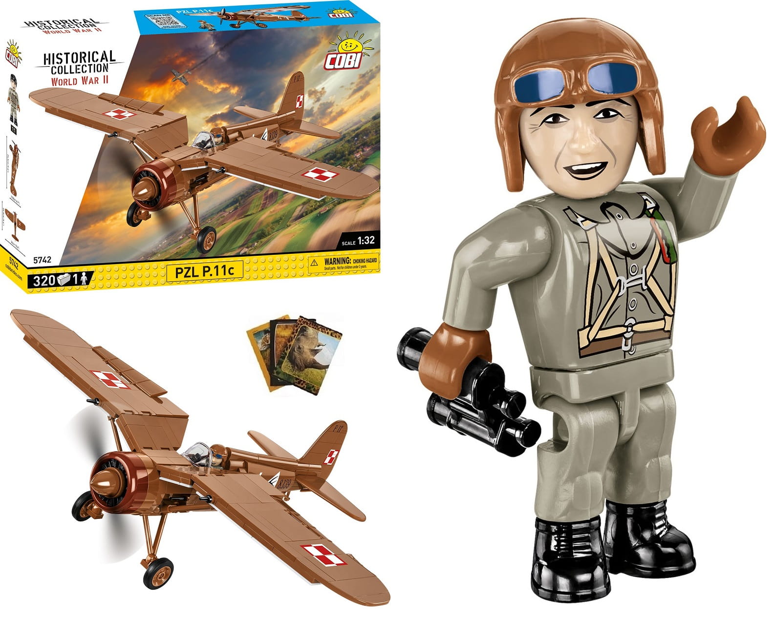 COBI 5742 PZL P.11C POLSKI MYŚLIWIEC KLOCKI 320 EL + GRATIS ZESZYT