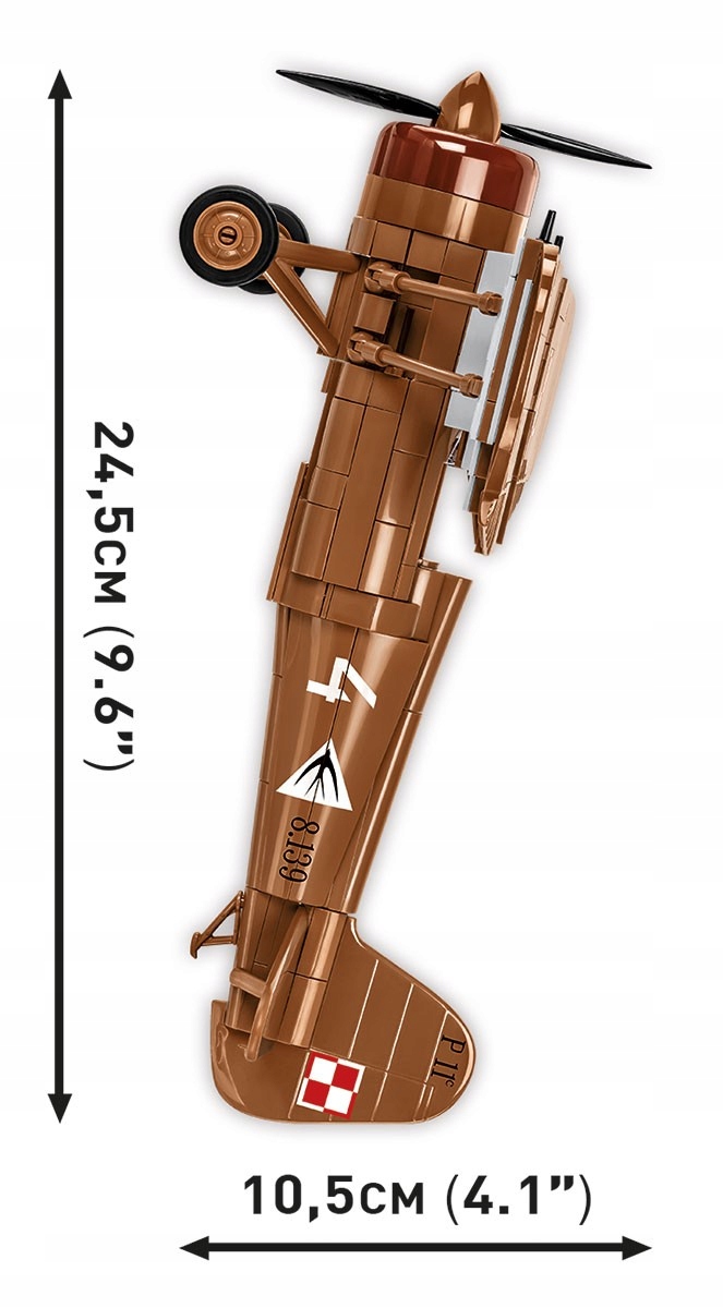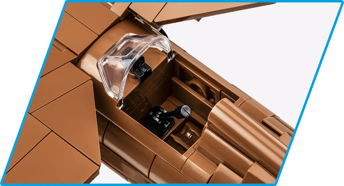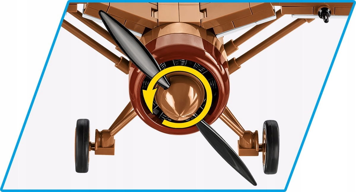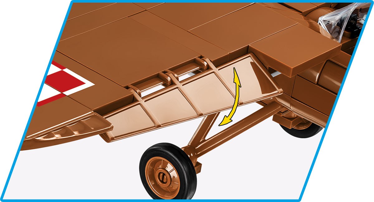 Model składa się z 320 wysokiej jakości elementów, wśród których są również liczne klocki z trwałymi nadrukami. Funkcjonalności samolotu to: ruchome śmigło, ruchome lotki na skrzydłach, możliwość montażu 2 lub 4 karabinów maszynowych (opcja wyboru), dostęp do kabiny pilota, w której można umieścić figurkę zawierającą dwustronne nadruki. Na szczególną uwagę zasługują nadruki z szachownicami znajdujące się na spodzie skrzydeł! W komplecie znajduje się również klockowa podstawka ekspozycyjna z miejscami do wpięcia pilota oraz tabliczki z nazwą modelu.