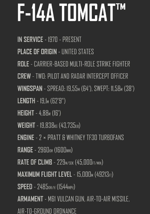 F-14 TOMCAT to prawdziwa ikona zimnowojennego lotnictwa. Do służby w US Navy wszedł w 1972 roku, a oficjalnie został wycofany dopiero w 2006. Zaprojektowany przez firmę Grumman Corporation, myśliwiec ten po raz pierwszy wzniósł się w powietrze w 1970 roku i szybko stał się podstawą obrony lotniskowców amerykańskiej floty.