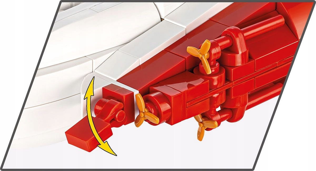 Precyzyjnie odwzorowuje kształt i bryłę okrętu, a liczne detale, takie jak ruchome dźwigi, śruby i ster, zapewniają autentyczność i możliwość interakcji.