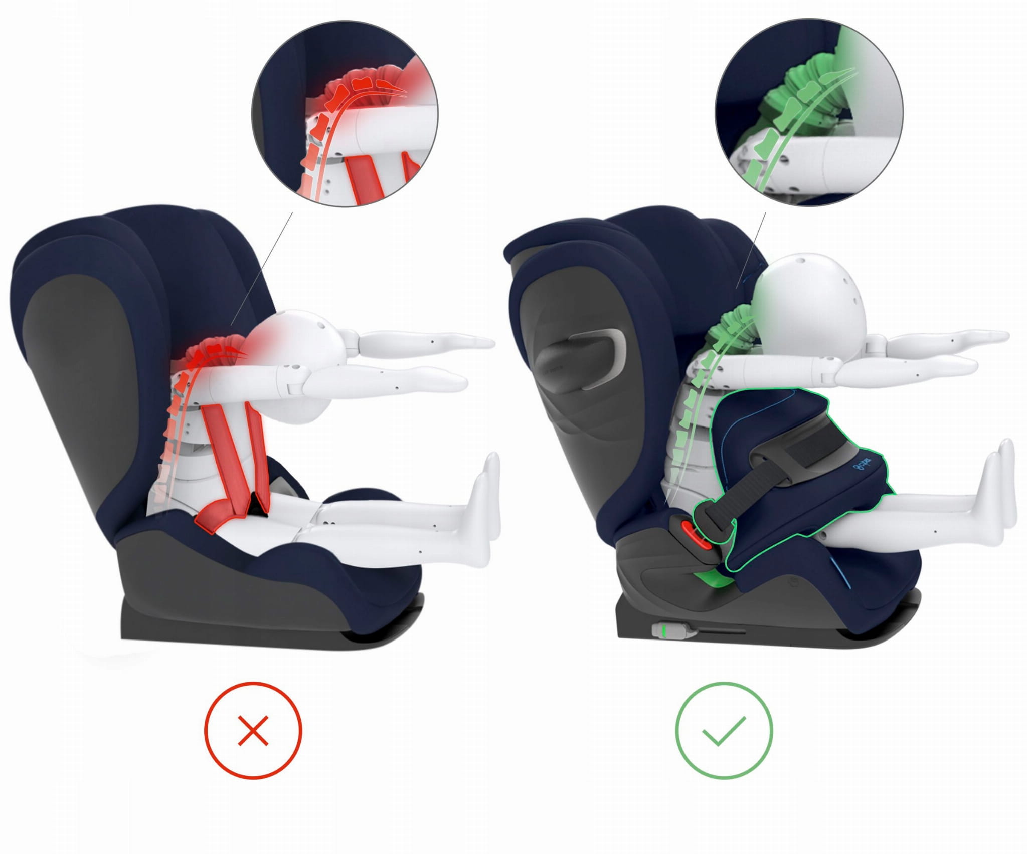 Nagradzana zaawansowana osłona tułowia zmniejsza ryzyko obrażeń szyi przy zderzeniu czołowym, zapewniając ochronę znacznie przewyższającą konwencjonalne pasy bezpieczeństwa. Podczas kolizji czołowej dziecko pochyla się do przodu na osłonę tułowia, która działa podobnie do poduszki powietrznej. Siła uderzenia rozkłada się na dużej powierzchni, zmniejszając obciążenie wrażliwej szyi i chroniąc głowę.