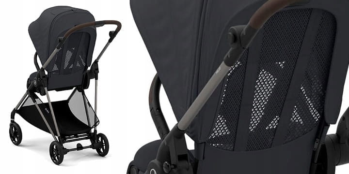 Sprężysta, oddychająca siateczka umożliwia cyrkulację chłodnego powietrza na oparciu, zapewniając dziecku przewiewność w gorące dni.