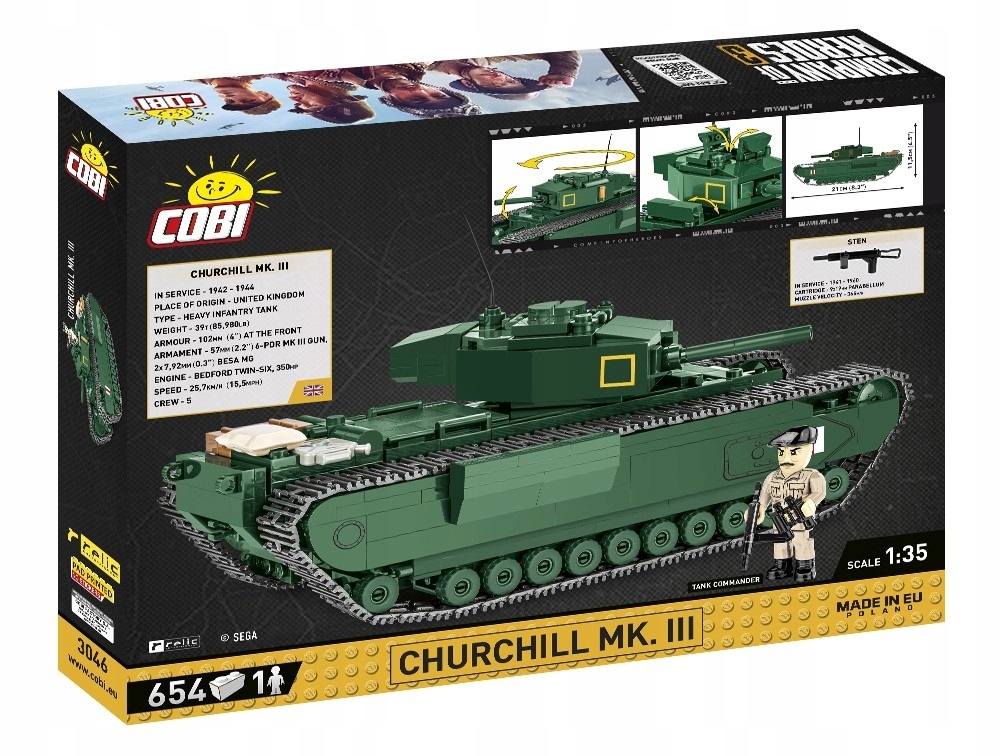 Zestaw został zaprojektowany w skali 1:35 przy użyciu 654 klocków konstrukcyjnych COBI. Czołg został wyposażony w działającą trakcję gąsienicową, obracającą się wieżę, ruchome działo i otwierany właz. Do zestawu dołączona jest figurka brytyjskiego czołgisty wyposażonego w beret, pistolet maszynowy Sten oraz lornetkę. Na klockach znajdują się wysokiej jakości nadruki, które odzwierciedlają oznaczenia i detale czołgu oraz szczegóły umundurowania dowódcy czołgu.