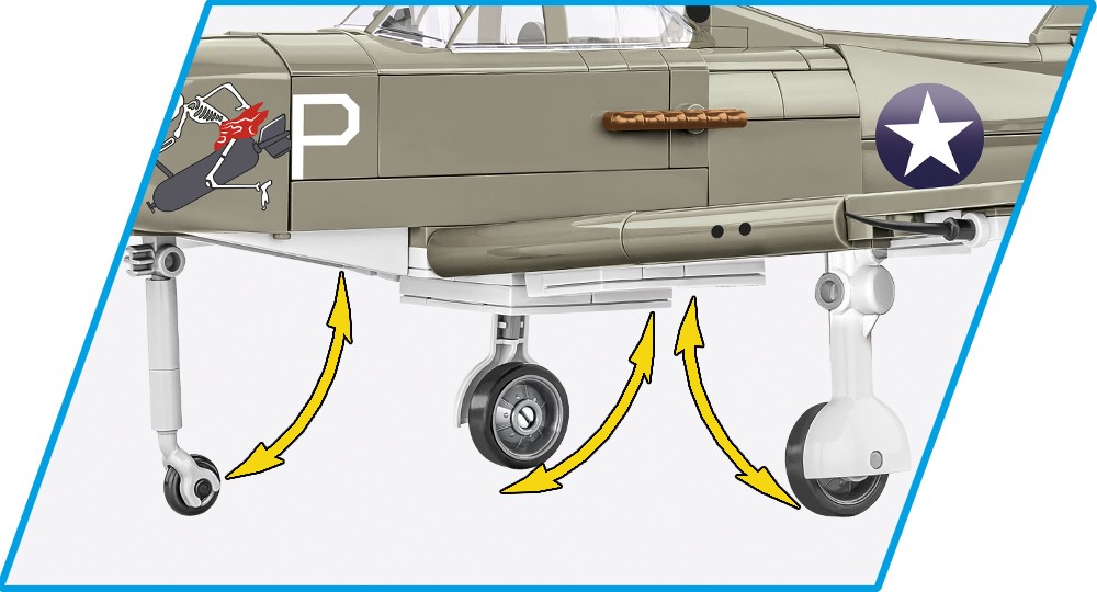 Klockowy model oferuje wiele ruchomych elementów takich jak obracające się śmigło, ruchome lotki skrzydeł, koła z gumowymi oponami, które można złożyć do pozycji poziomej. Odwzorowane zostały detale i historyczne malowanie amerykańskie w kolorze oliwkowym. Kokpit, można otworzyć, aby posadzić w fotelu figurkę historycznego pilota! Dzięki specjalnej podstawce, ekspozycyjnej z tabliczką zawierającą nazwę samolotu oraz miejsce na przyczepienie figurki cały zestaw prezentuje się znakomicie! W modelu zastosowano trwałe nadruki i historyczne oznaczenia.