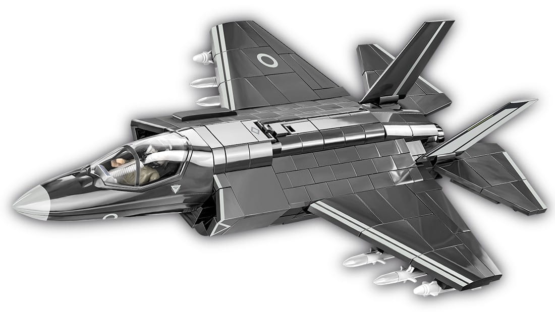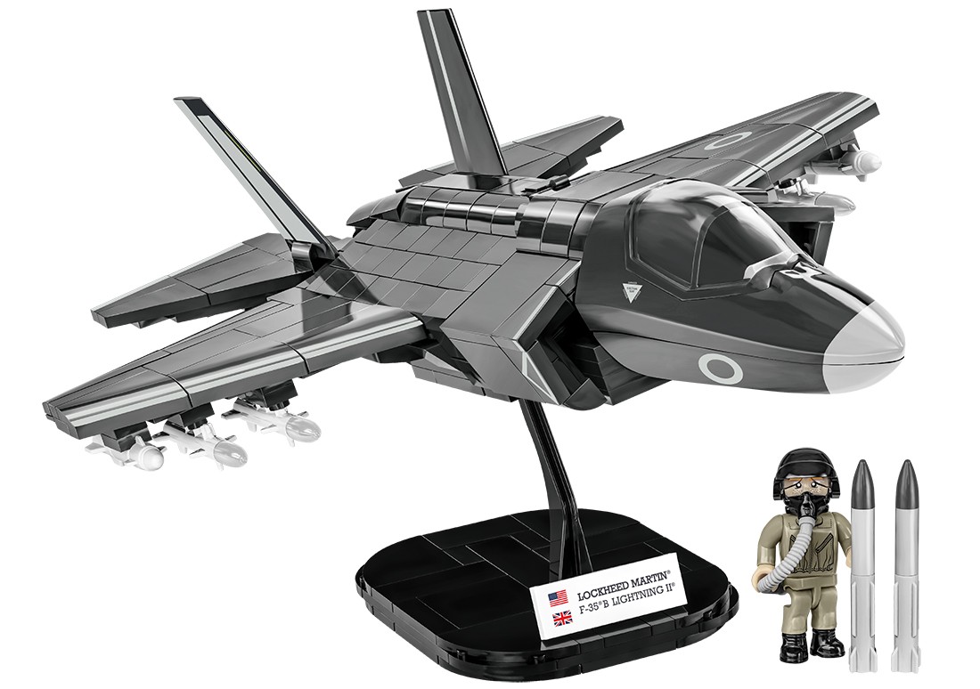 Z 594 najwyższej jakości klocków konstrukcyjnych COBI wybudujesz wydany na licencji megakoncernu zbrojeniowego Lockheed Martin najnowocześniejszy na świecie wielozadaniowy myśliwiec F-35®B LIGHTNING II®. Zestaw został starannie zaprojektowany w modelarskiej skali 1:48. Specjalnie zaprojektowane na potrzeby tego zestawu klocki zostały pokryte wysokiej jakości nadrukami. Charakterystyczna kabina pilota wykonana jest w sposób bardzo realistyczny i można ją otwierać, aby mieścić w środku figurkę pilota wyposażonego w kask i maskę tlenową z wężykiem. Kupując samolot, zbudujesz również klockową podstawkę ekspozycyjną z tabliczką zawierającą nazwę zestawu!
