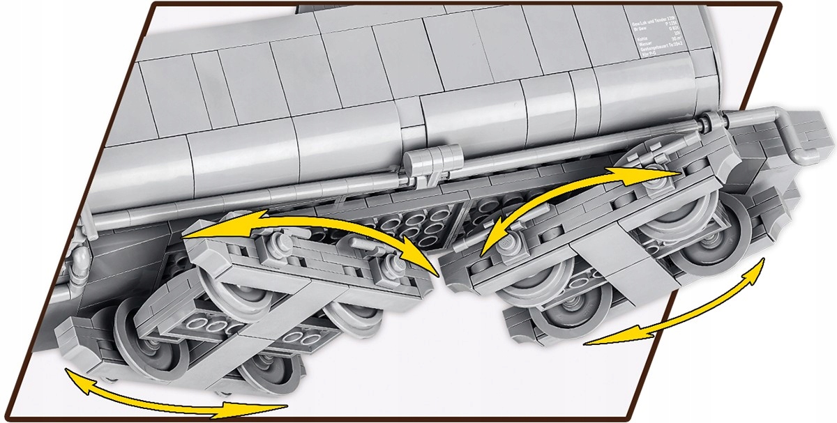 Aż pięć różnych wzorów kół w lokomotywie, z których część zawiera ranty, czyli specjalne krawędzie, sprawia, że model świetnie utrzymuje się na klockowych torach, a także jest w stanie pokonywać klockowe zakręty o skali nachylenia od R88.
