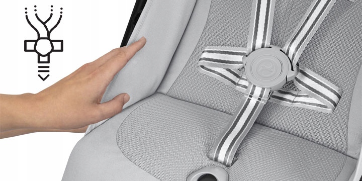 - nowe szelki, zaciągane tak samo jak pasy fotelika;