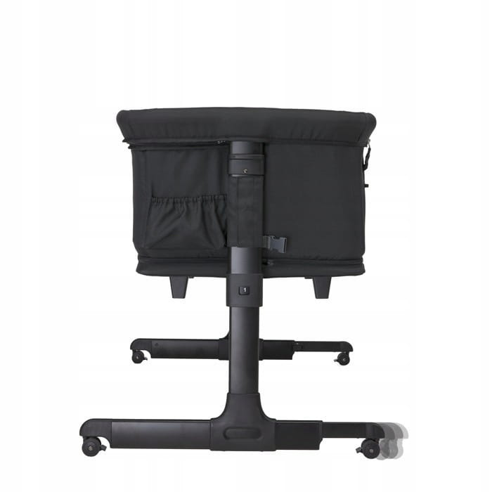 espiro cloud ma solidny stelaż z czterema kółkami, dzięki czemu można je łatwo przesuwać z miejsca na miejsce. Łóżeczko to bez problemu dopasujesz do łóżka rodziców. Umożliwia to funkcja regulacji wysokości na 5 poziomach. W ten sposób ustawisz je tak, aby jego materac znajdował się na wysokości Twojego materaca – zapewnisz sobie wygodny dostęp do maluszka. Równocześnie istotne jest to, by łóżeczko idealnie dopasowało się do łóżka rodziców. Umożliwia to system regulacji wychylenia bocznego nóżek.