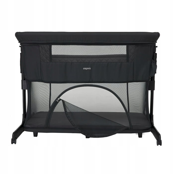 Bok dostawnego łóżeczka niemowlęcego na kółkach espiro cloud wyposażono w otwieralny panel, który wystarczy rozpiąć, by być bliżej malucha. Dzięki temu noworodek i niemowlak mogą spać bliżej rodziców, co pozwala szkrabom czuć się bezpiecznie, a rodzicom uspokajać je dotykiem. Dodatkowo łóżeczko posiada funkcję 4-stopniowej regulacji kąta nachylenia materacyka umożliwiającej dostosowanie jej kąta pochylenia tak, aby malec w trakcie infekcji czy kataru mógł łatwiej oddychać.