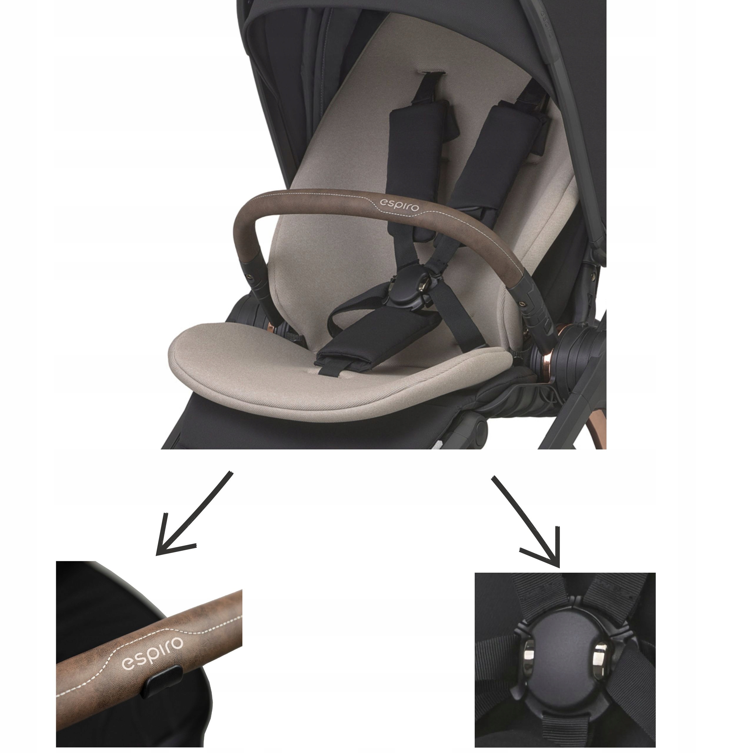 Niezmiennie espiro miloo to ikona stylu. Dlatego w kolekcji 2026 pojawiły się nowe zdobienia pokrowca z wyjątkowym hot pressing, z efektem 3D, a także zupełnie nowa, elegancka torba dla rodzica oraz trzy zupełnie nowe, wyjątkowe kolory: 303 unique dove, 309 tasty cappuccino i 319 perfect beige. Starannie dobrane detale, jak eleganckie końcówki zamków czy wykończenia materiałów, tworzą unikatowy styl, który stale zdecydowanie wyróżnia espiro miloo 2.0.