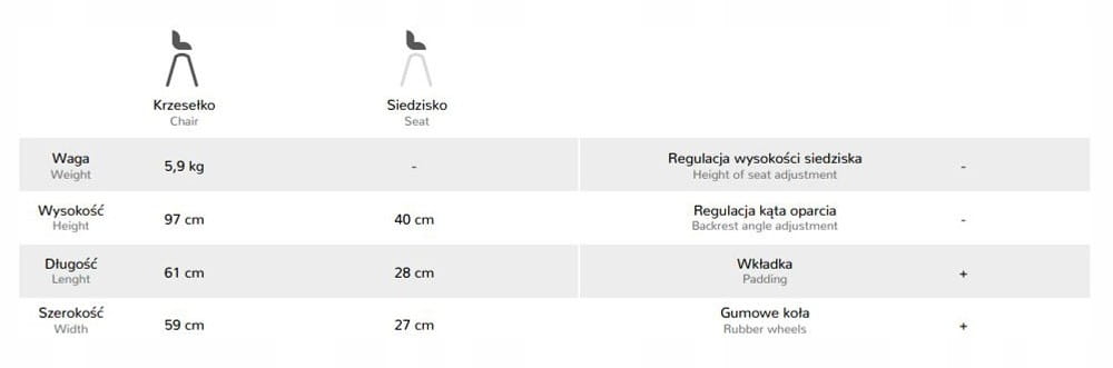 Espiro yuko to elegancja i funkcjonalność - podwójna taca ułatwia utrzymanie krzesełka w nienagannej czystości.