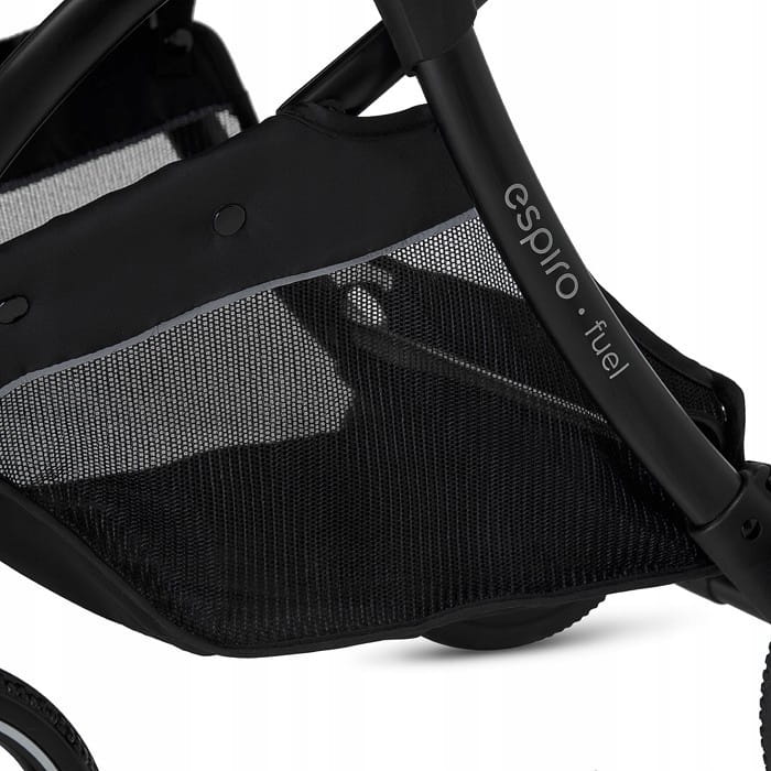 Nowoczesny system składania autofolding zapewnia możliwość złożenia wózka dosłownie jedną ręką. Espiro Fuel to jedyna kompaktowa spacerówka z dużymi kołami, które posiadają pełną amortyzację. Dlatego model Fuel sprawdzi się nie tylko w mieście, ale również poza nim na nieutwardzonych ścieżkach. Do wózka można kupić torbę podróżną, która ochroni wózek podczas podróży samolotem czy dłuższej trasy w samochodzie. W zestawie wraz z wózkiem znajduje się uniwersalna wkładka oraz śpiworko-pokrowiec, wyposażenie to sprawdzi się idealnie podczas chłodniejszych dni.