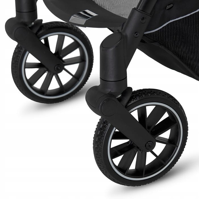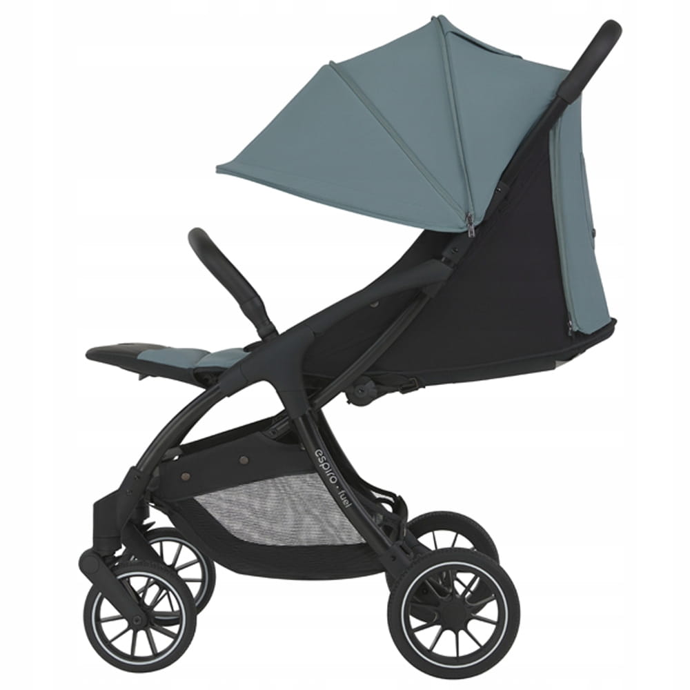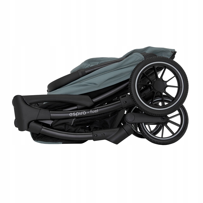 Nowoczesny system składania autofolding zapewnia możliwość złożenia wózka dosłownie jedną ręką. Espiro Fuel to jedyna kompaktowa spacerówka z dużymi kołami, które posiadają pełną amortyzację. Dlatego model Fuel sprawdzi się nie tylko w mieście, ale również poza nim na nieutwardzonych ścieżkach. Do wózka można kupić torbę podróżną, która ochroni wózek podczas podróży samolotem czy dłuższej trasy w samochodzie. W zestawie wraz z wózkiem znajduje się uniwersalna wkładka oraz śpiworko-pokrowiec, wyposażenie to sprawdzi się idealnie podczas chłodniejszych dni.
