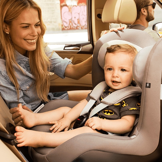 Fotelik zamontowany tyłem do kierunku jazdy, w przypadku zderzenia czołowego, zmniejsza ryzyko odniesienia obrażeń o ponad 80%, w porównaniu do tradycyjnego fotelika zamontowanego przodem z systemem pasów. Siła uderzenia absorbowana jest przez znacznie większą powierzchnię.*