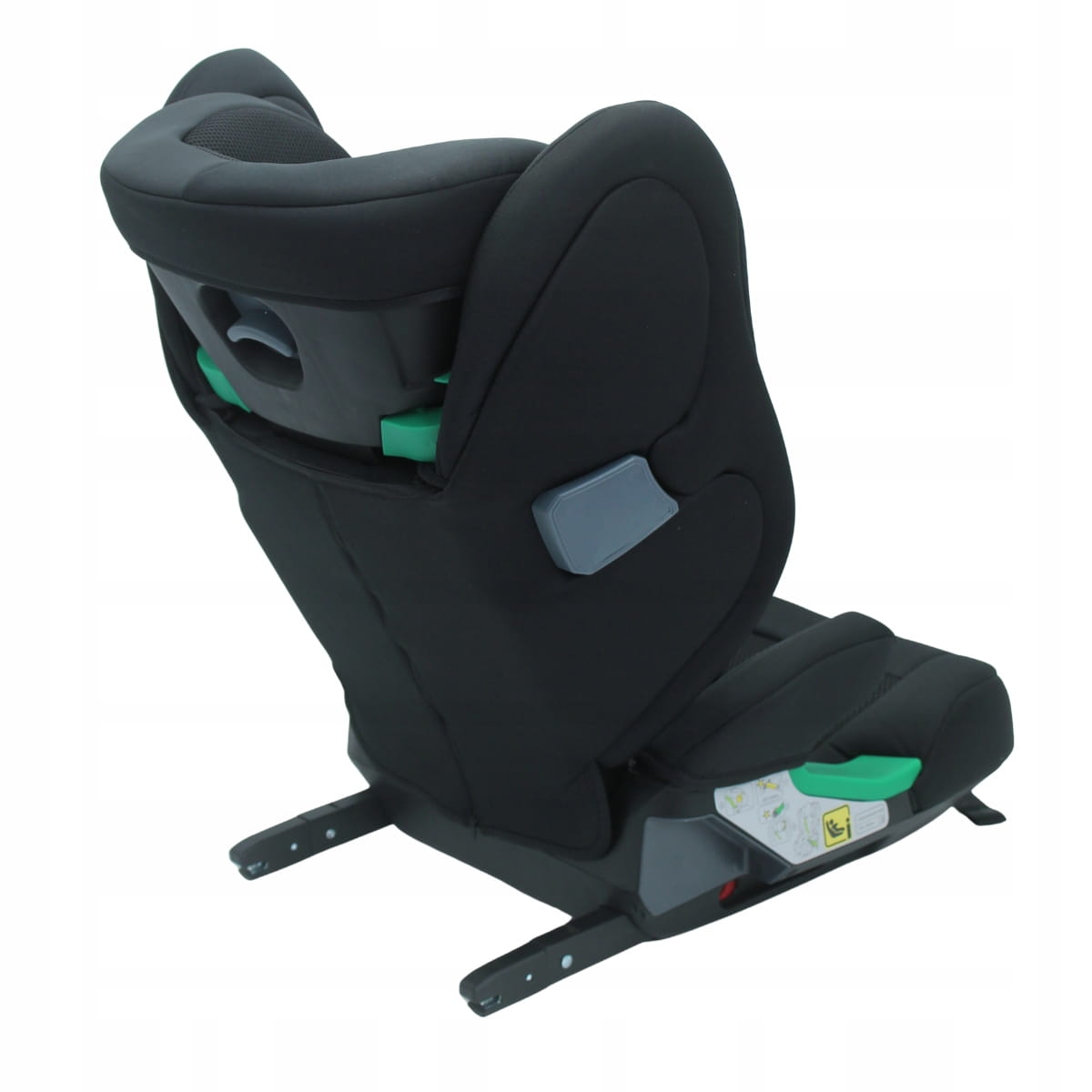 - Automatycznie wysuwany system ISOFIX – szybki, intuicyjny montaż bez zbędnego wysiłku, dzięki dźwigni umieszczonej z przodu fotelika.