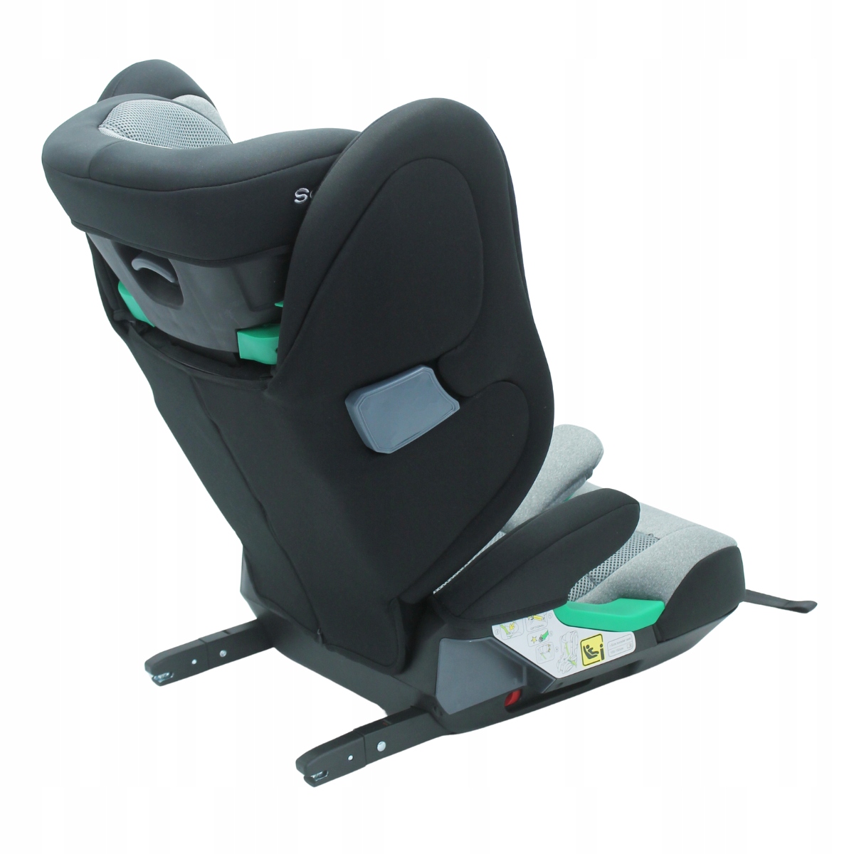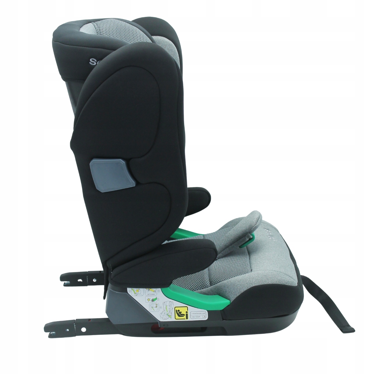 - Automatycznie wysuwany system ISOFIX – szybki, intuicyjny montaż bez zbędnego wysiłku, dzięki dźwigni umieszczonej z przodu fotelika.