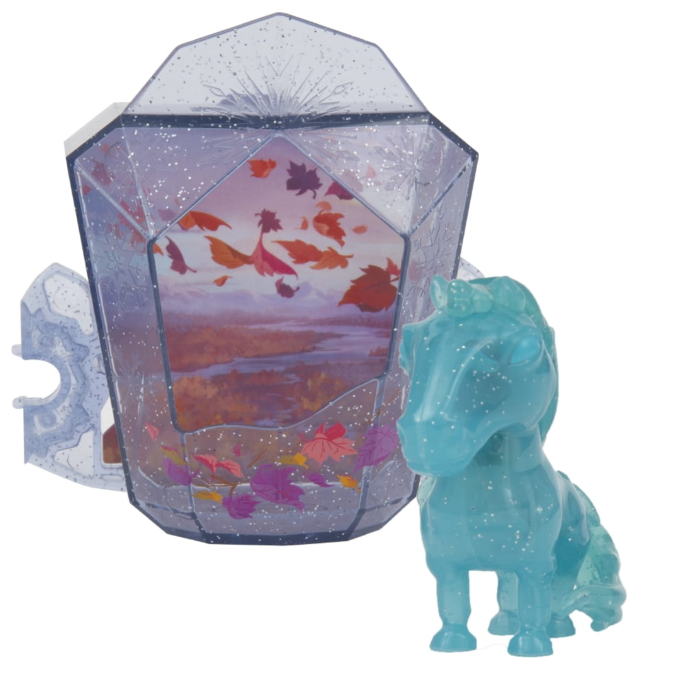 Szepnij i rozświetl! Laleczka nawiązująca do fabuły z filmu Kraina Lodu 2 z systemem RGB LED. Rozświetla się pod wpływem powietrza wdmuchiwanego do otworu w górnej części laleczki. Po ponownym wdmuchnięciu powietrza kolor światła się zmienia. Łącznie występuje 6 różnych iluminacji świetlnych. Opakowanie zawiera laleczkę o wysokości 7 cm (załączone baterie) a także pojedynczą lodową komnatę. 4 komnaty łączą się ze sobą i mogą stworzyć lodowy zamek.